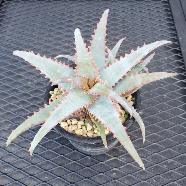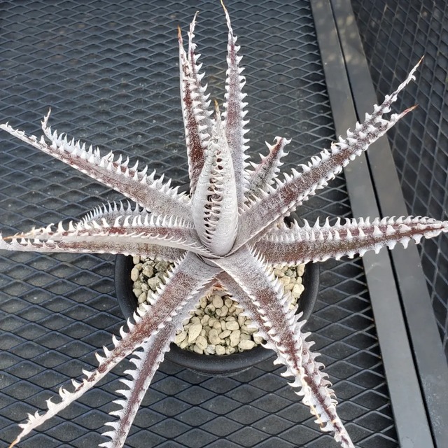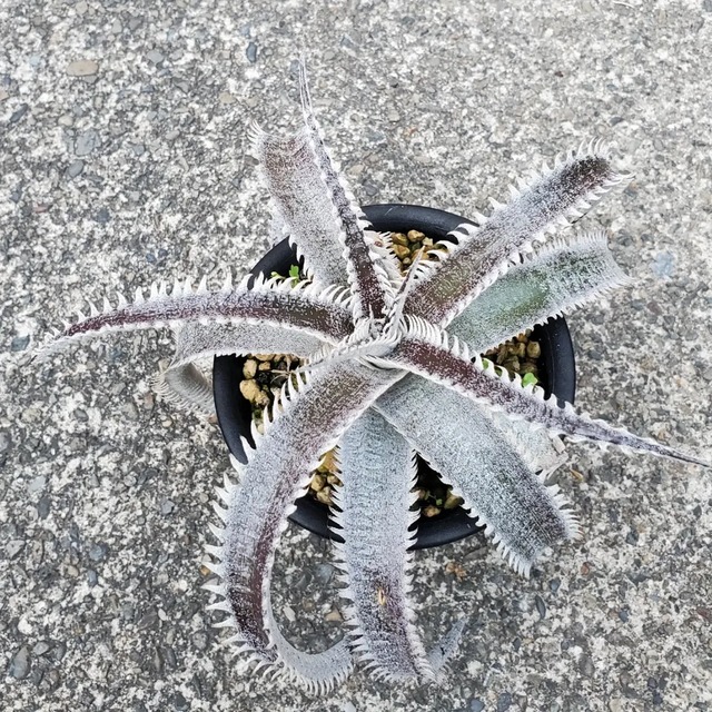Q氏(Qdyckia)作出のハイブリッドです。鋸歯(Spine)が無いツルツルの葉が出たかと思えば、別の葉では鋸歯が出たりと、不規則に成長する、不思議な品種です。(撮影日:2026年03月08日) ※NNN(ニンニンナーセリーズ)の品種名タグ付きです。 ※送料は全国一律980円(税込)となります。 ※活着済みです。 ※株のコンディションを考えて、鉢のまま発送させていただきます。 ※梱包には、リサイクル資材を使用させていただきます。 ※十分注意はしておりますが、虫等が混入する場合がございます。 ※カメラによって、実物と色合いが若干異なる場合がございます。 ※植物ですので、出荷後はすみやかに受け取りの上、内容のご確認をお願いします。 ※ご到着までに葉に傷みや枯れ、折れが発生する場合がございます。 ※お客様都合でのご返品は受け付けておりません。 ※ご購入後も、メール等で育成のご相談に対応させていただきます。 ※出荷には最大6日ほどいただくことがございます。 ※出荷に関しては、最新の休業情報をご確認下さい。 →https://plantsmaniax.base.shop/blog