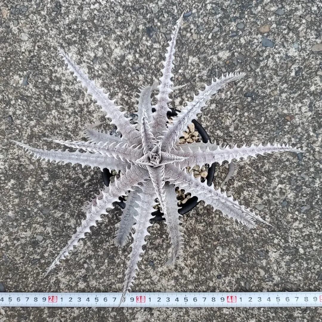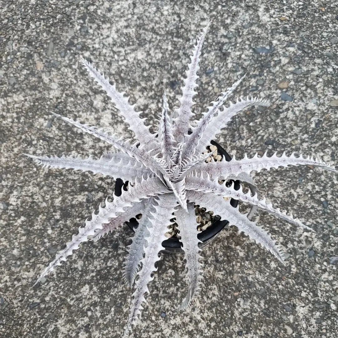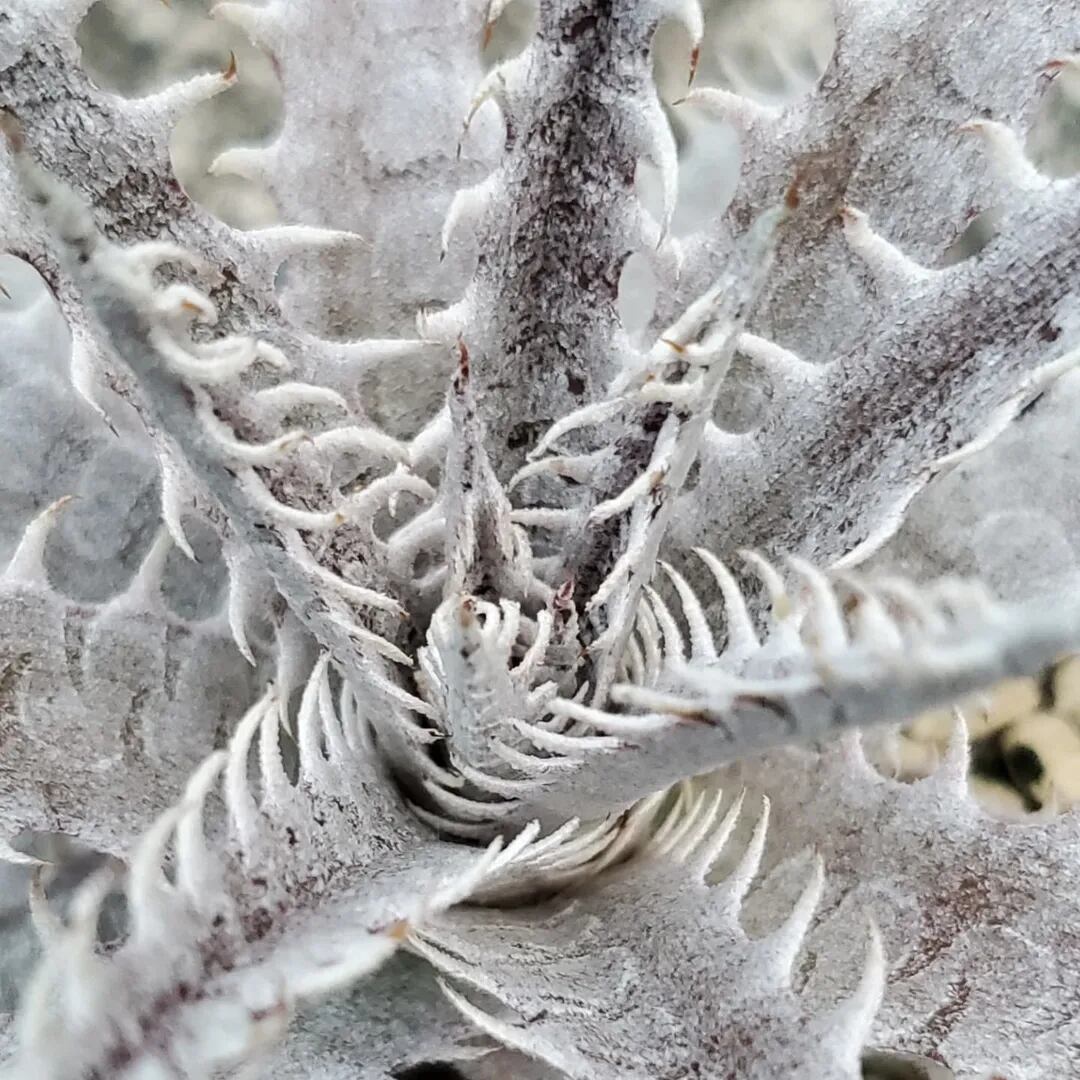 Panusのナンバー付き選抜ハイブリッドです。‘Mountain of Needles’ x ‘Jaws’の交配シリーズの一つで、複数のナンバーが存在します。どのナンバーも、白さとカールした鋸歯を引き継ぎながら、Jawsの荒々しさがミックスされた、素晴らしいハイブリッドです。(撮影日:2025年07月27日)