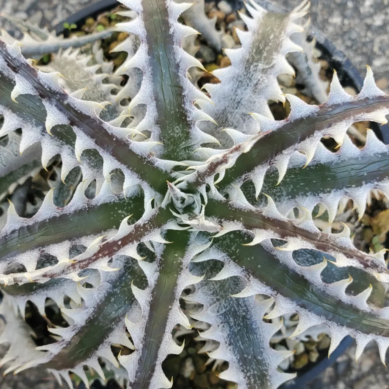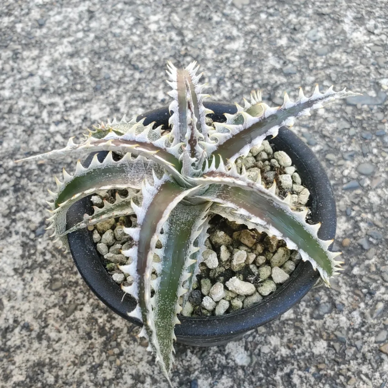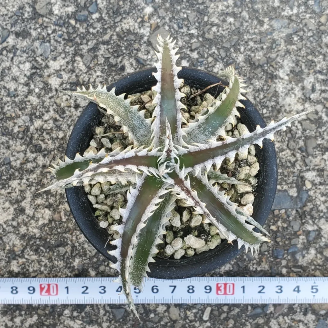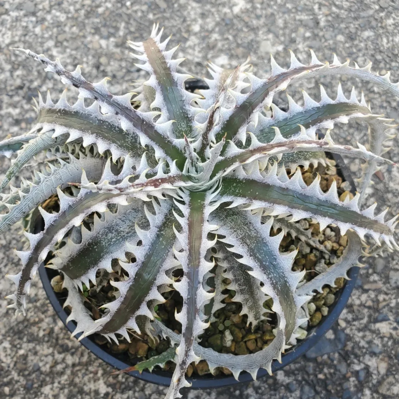 タイのOtto氏による、選抜ハイブリッドです。鋭く角度のついた大きな白い鋸歯が素晴らしい品種です。画像2、3は実際の親株で、販売株はこの親株から採れた子株になります。(撮影日:2025年09月30日)