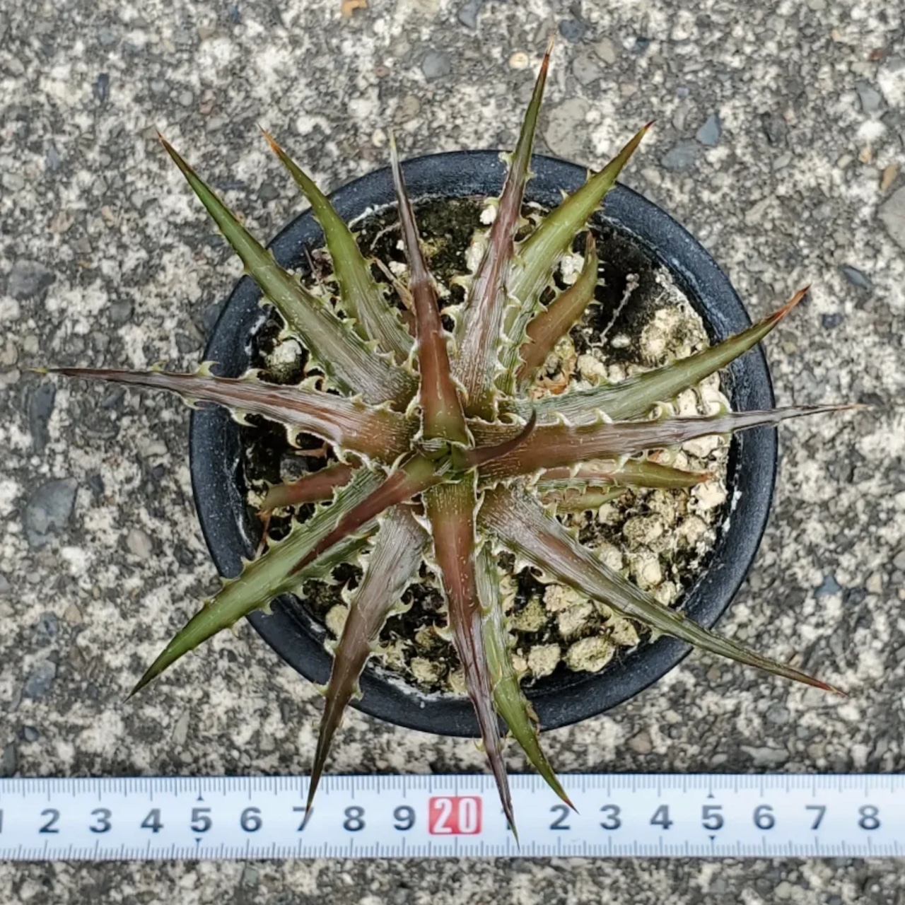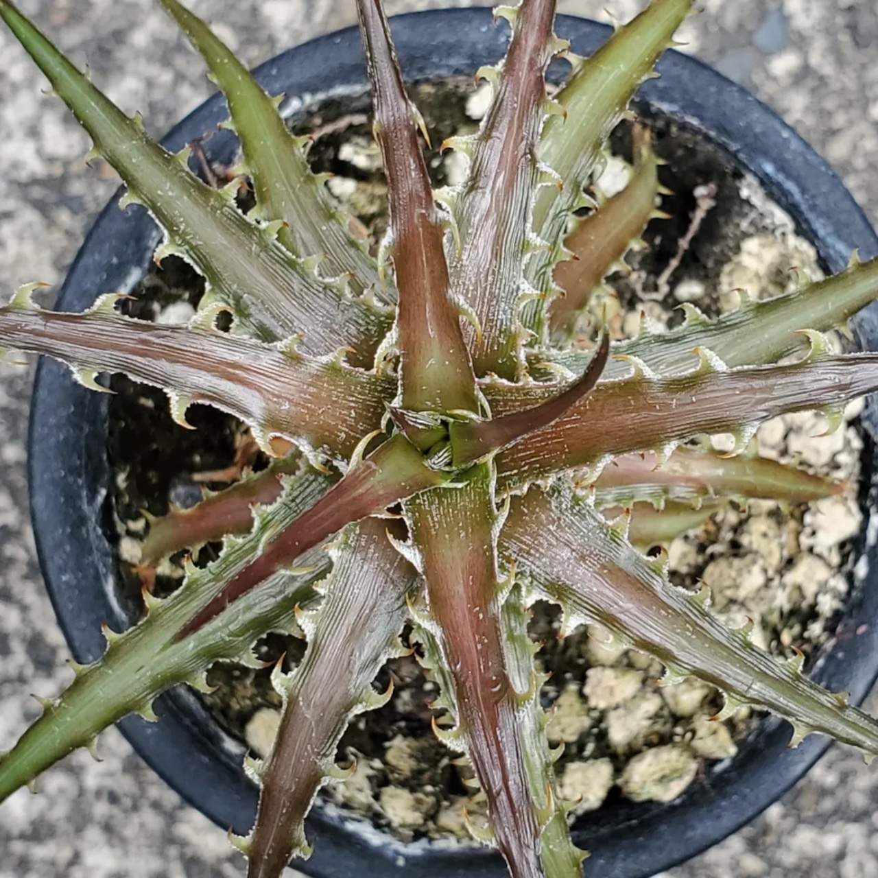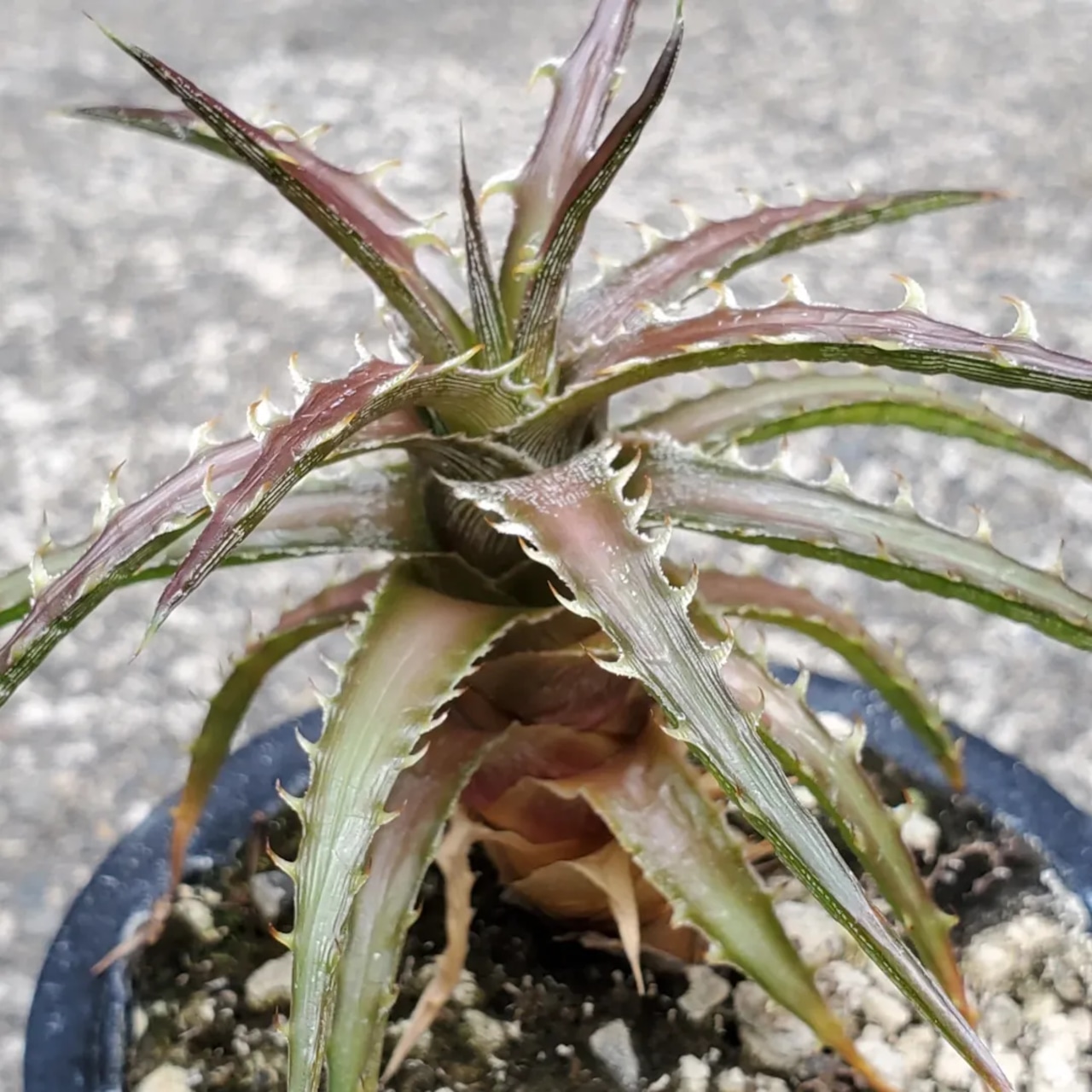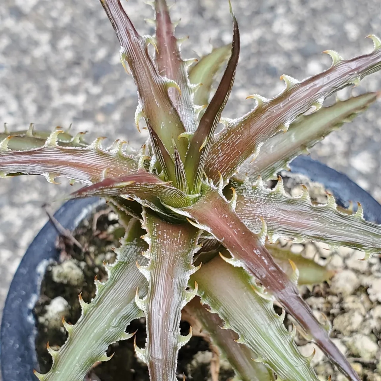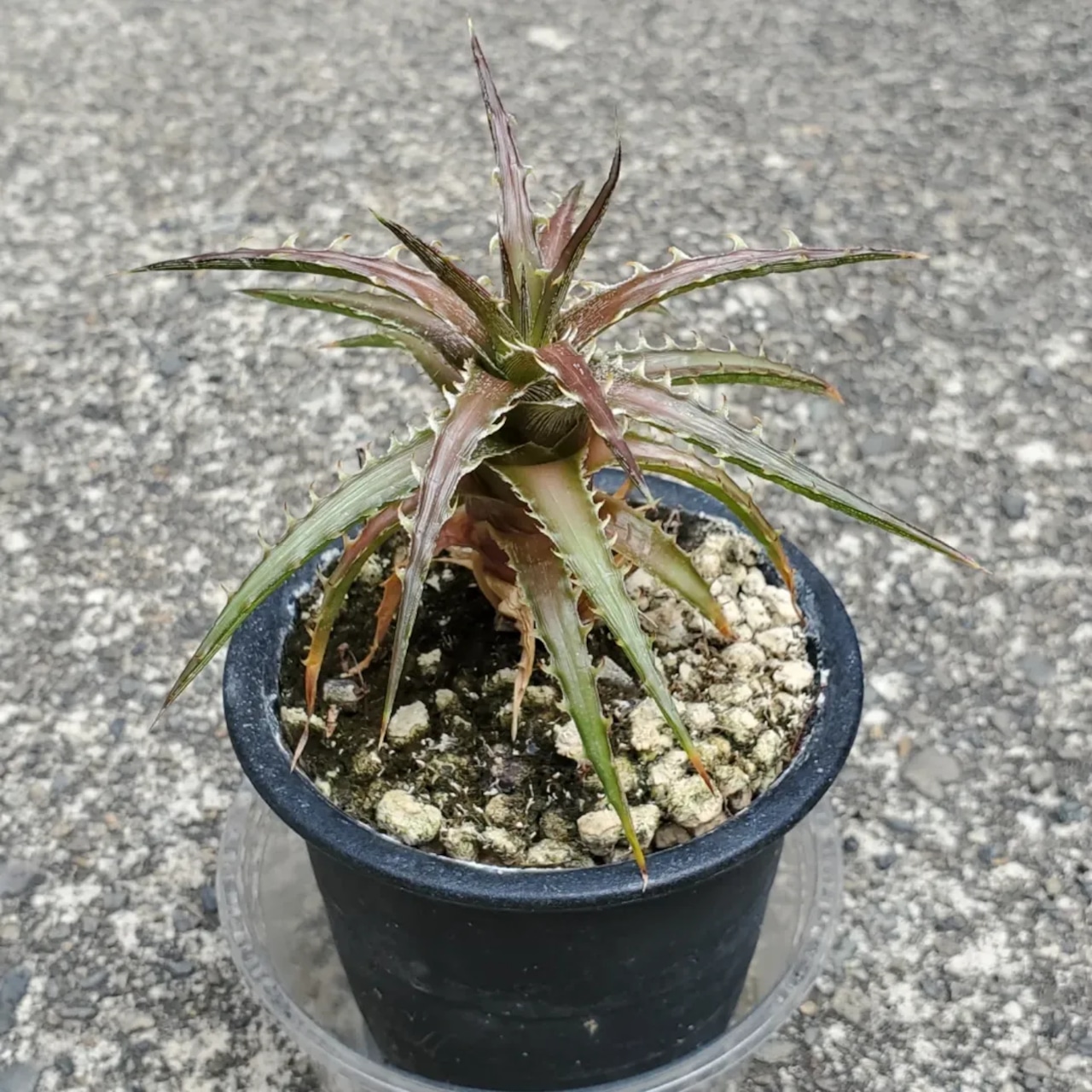 日本の刺毒植物狂氏による、ディッキアとエンコリリウムの異属間ハイブリッドです。交配はDyckia goehringii x Encholirium horridumになります。それぞれの親の良さを混ぜ合わせたような素晴らしい品種です。画像2、3は実際の親株で、販売株はこの親株から採れた子株になります。(撮影日:2025年09月30日)