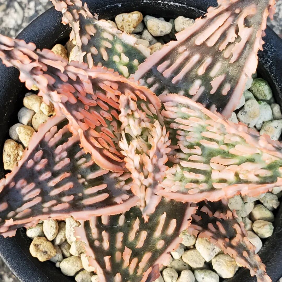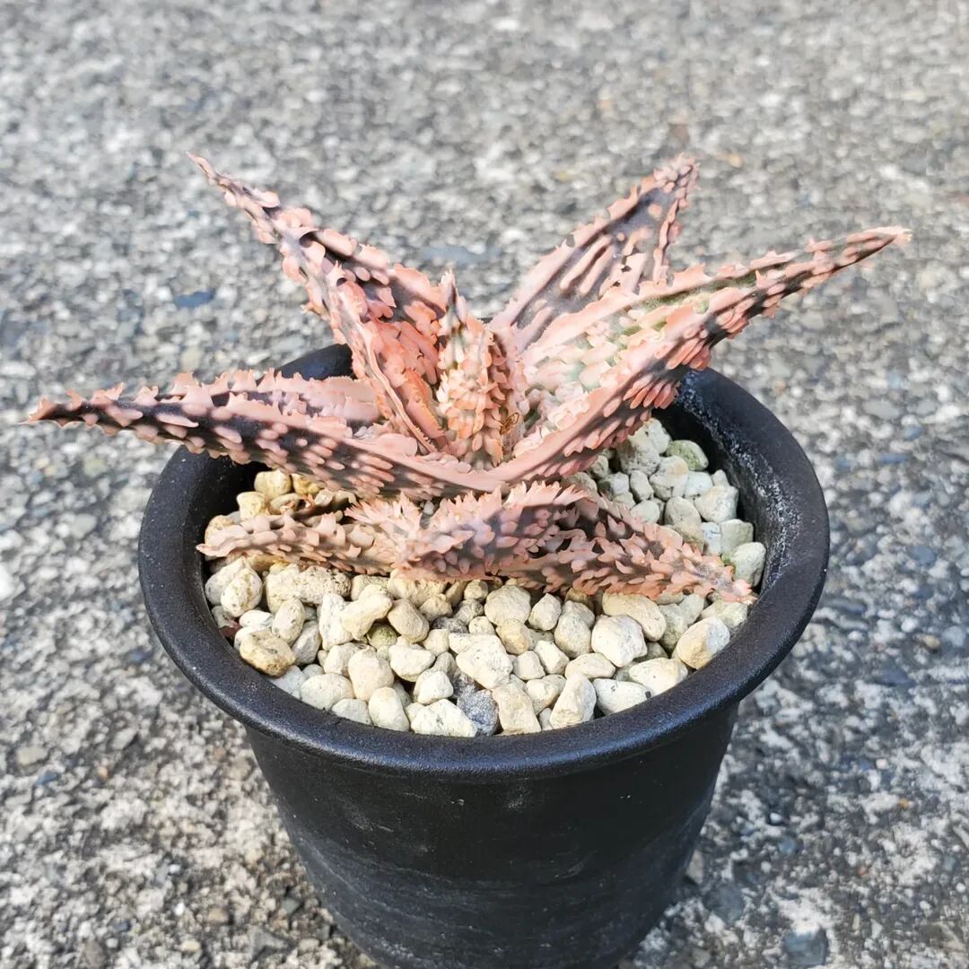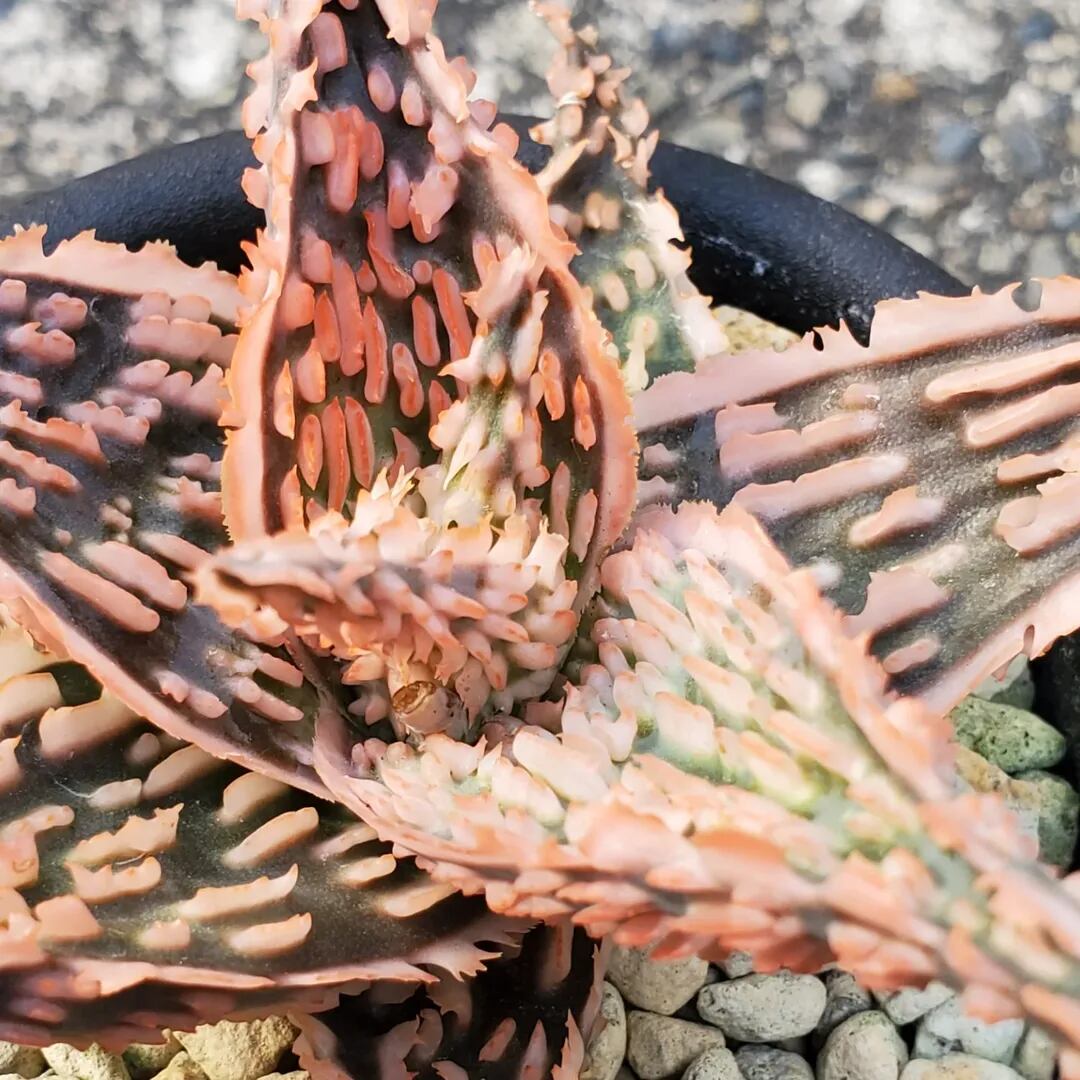 TCT産のアロエのハイブリッドです。葉の模様と、先端のピンクが美しい品種です。(撮影日:2025年10月20日)画像2、3は実際の親株で、販売株はこの親株からの子株になります。