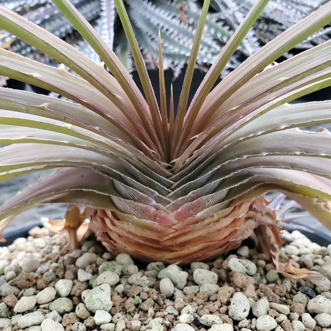 二列互生という扇のような形に展開する原種ディッキアです。タイのOtto Bromeliadで育成された株からの子株です。(撮影日:2025年10月30日)画像2、3は実際の親株で、販売株はこの親株から採れた子株になります。