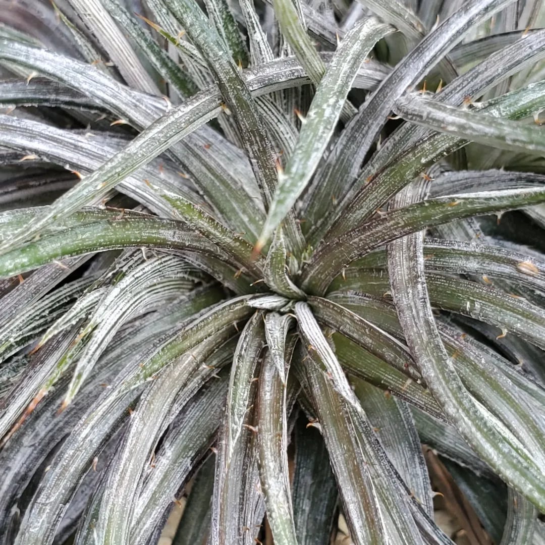 細葉で知られる、原種ディッキアです。通常のタイプに比べると、葉が赤紫色になります。単体では小型ですが、成長点の分頭によって増え、群生を楽しむことができます。(撮影日:2025年10月10日)