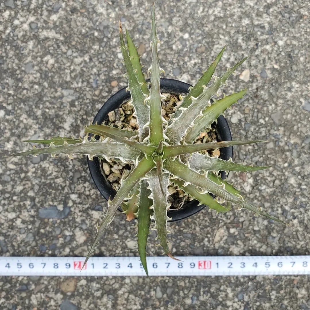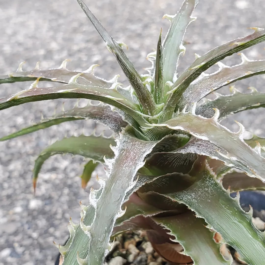 日本の刺毒植物狂氏による、ディッキアとエンコリリウムの異属間ハイブリッドです。交配はDyckia goehringii x Encholirium horridumになります。それぞれの親の良さを混ぜ合わせたような素晴らしい品種です。画像2、3は実際の親株で、販売株はこの親株から採れた子株になります。(撮影日:2025年11月04日)
