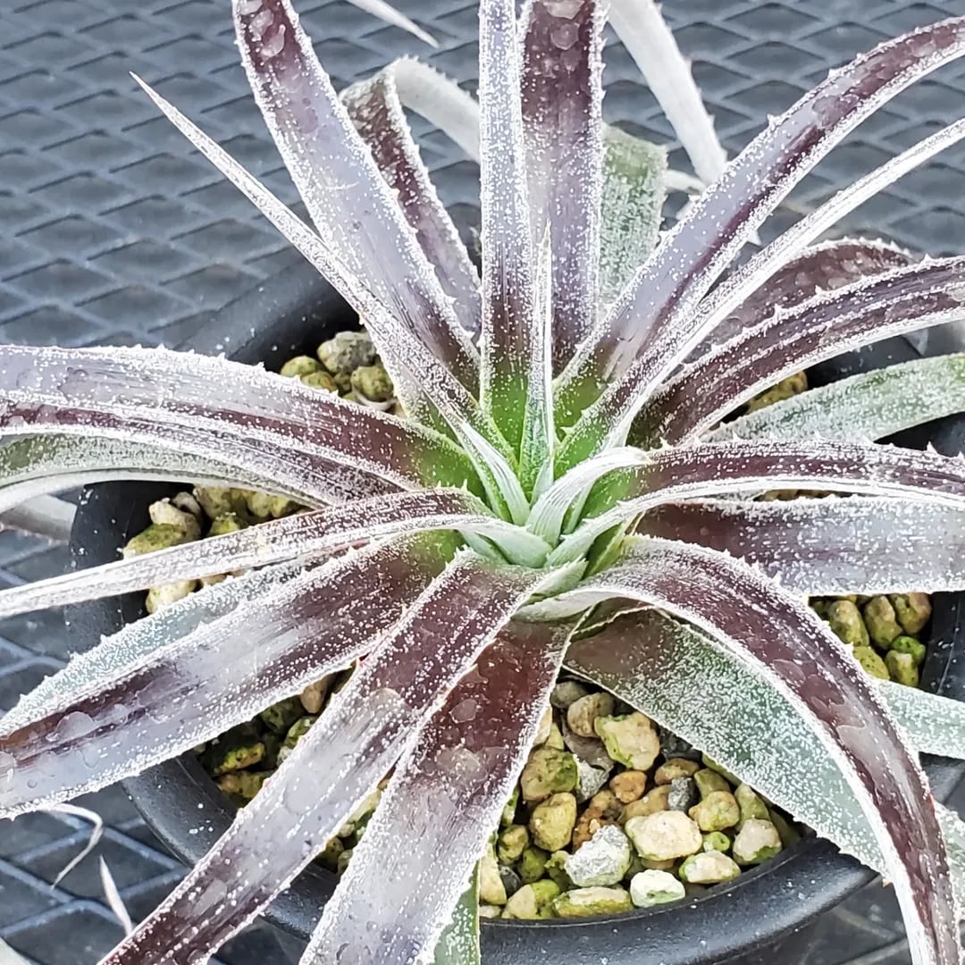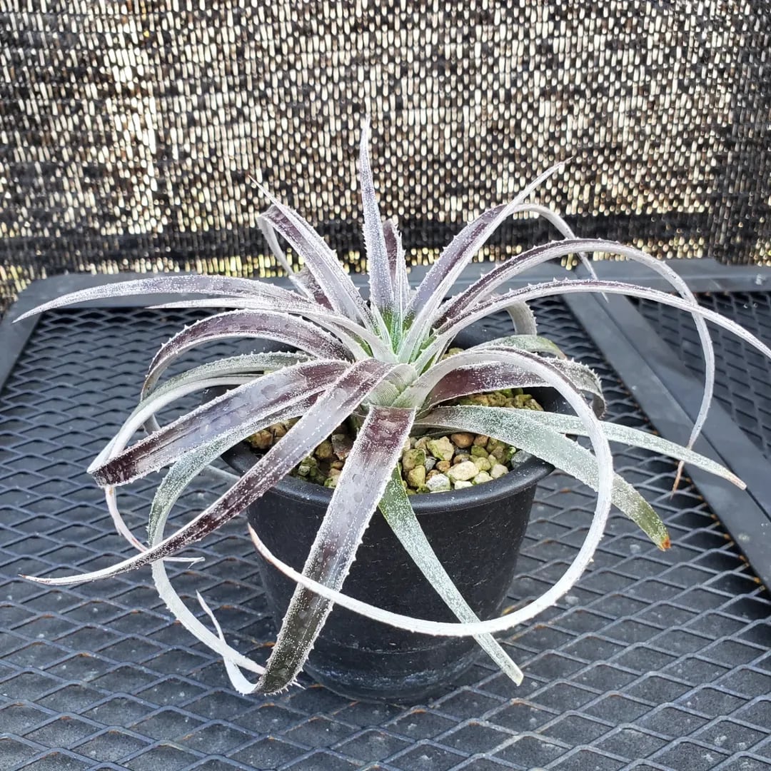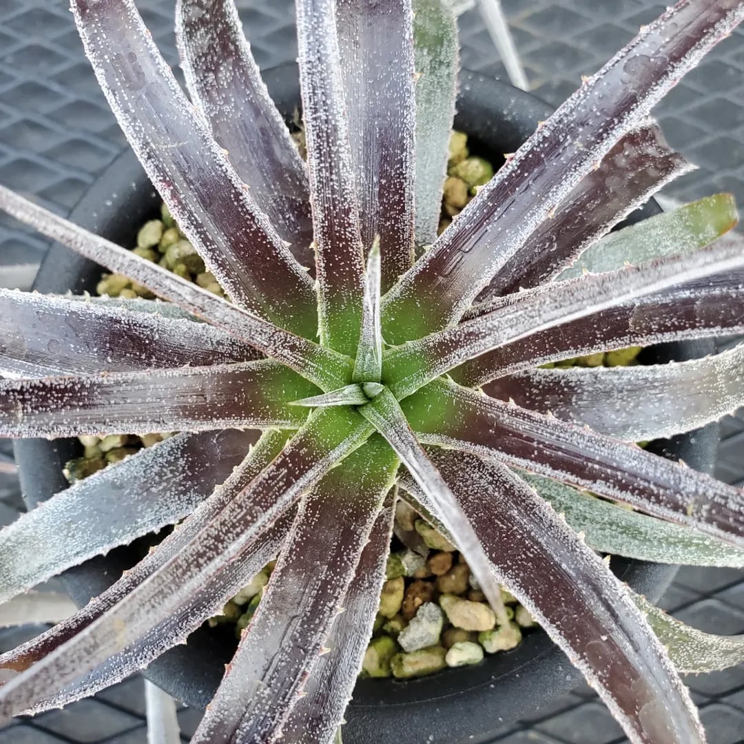 Dyckia ‘Arizona’とHechtia glomerataとの珍しい異属間ハイブリッドです。かなり弱いトゲのツヤ葉が展開し、美しいボール状に展開する品種です。(撮影日:2026年03月08日)画像2、3は、NNNにある参考親株です。