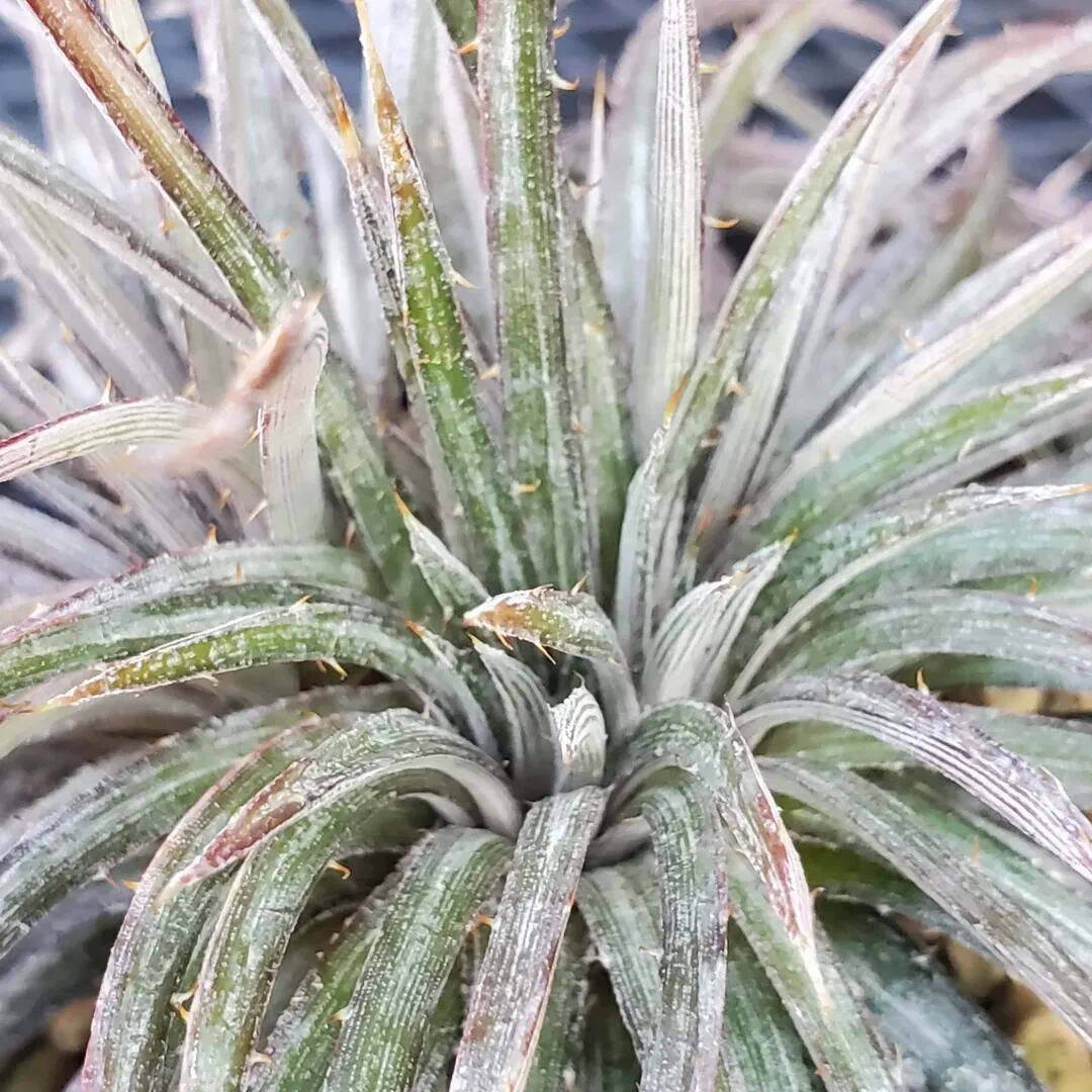 細葉で知られる、原種ディッキアです。通常のタイプに比べると、葉が赤紫色になります。単体では小型ですが、成長点の分頭によって増え、群生を楽しむことができます。(撮影日:2026年03月21日)