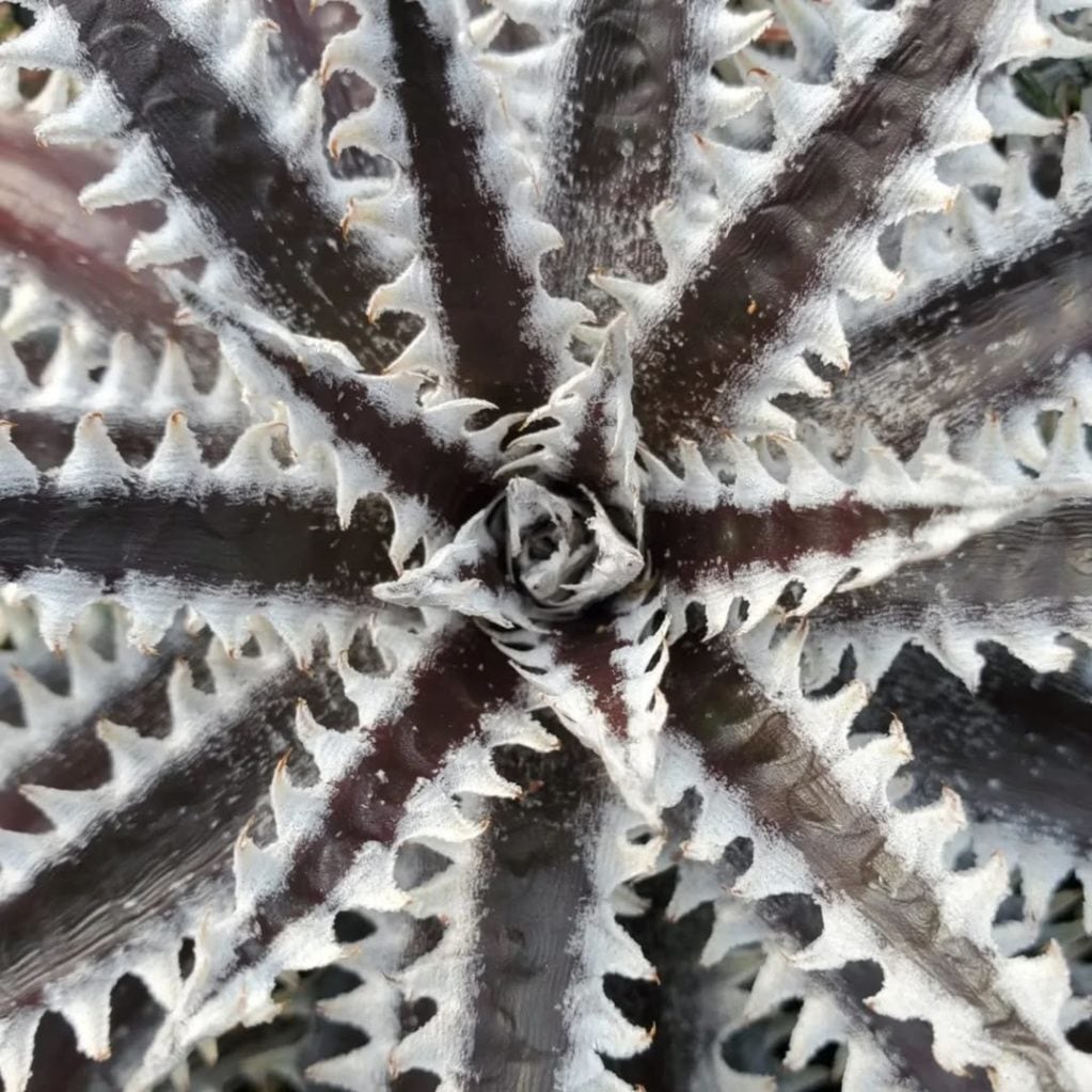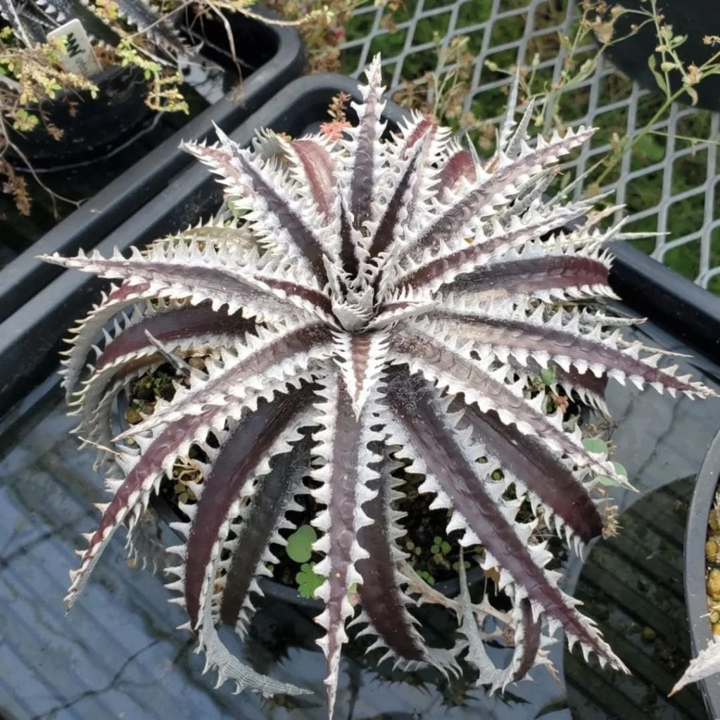 タイのSueb氏の名前付きハイブリッドです。赤紫の地肌に鋸歯部分がトリコームで白くなる、紅白タイプのディッキアです。成長すると鋸歯の密度も増し、メリハリの付いた美しい姿になります。(撮影日:2026年01月25日)画像2、3は実際の親株で、販売株はこの親株から採れた子株になります。