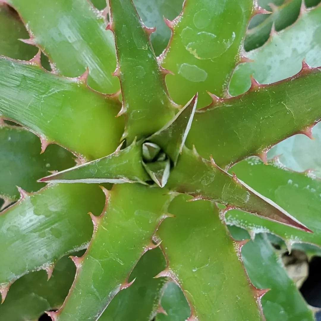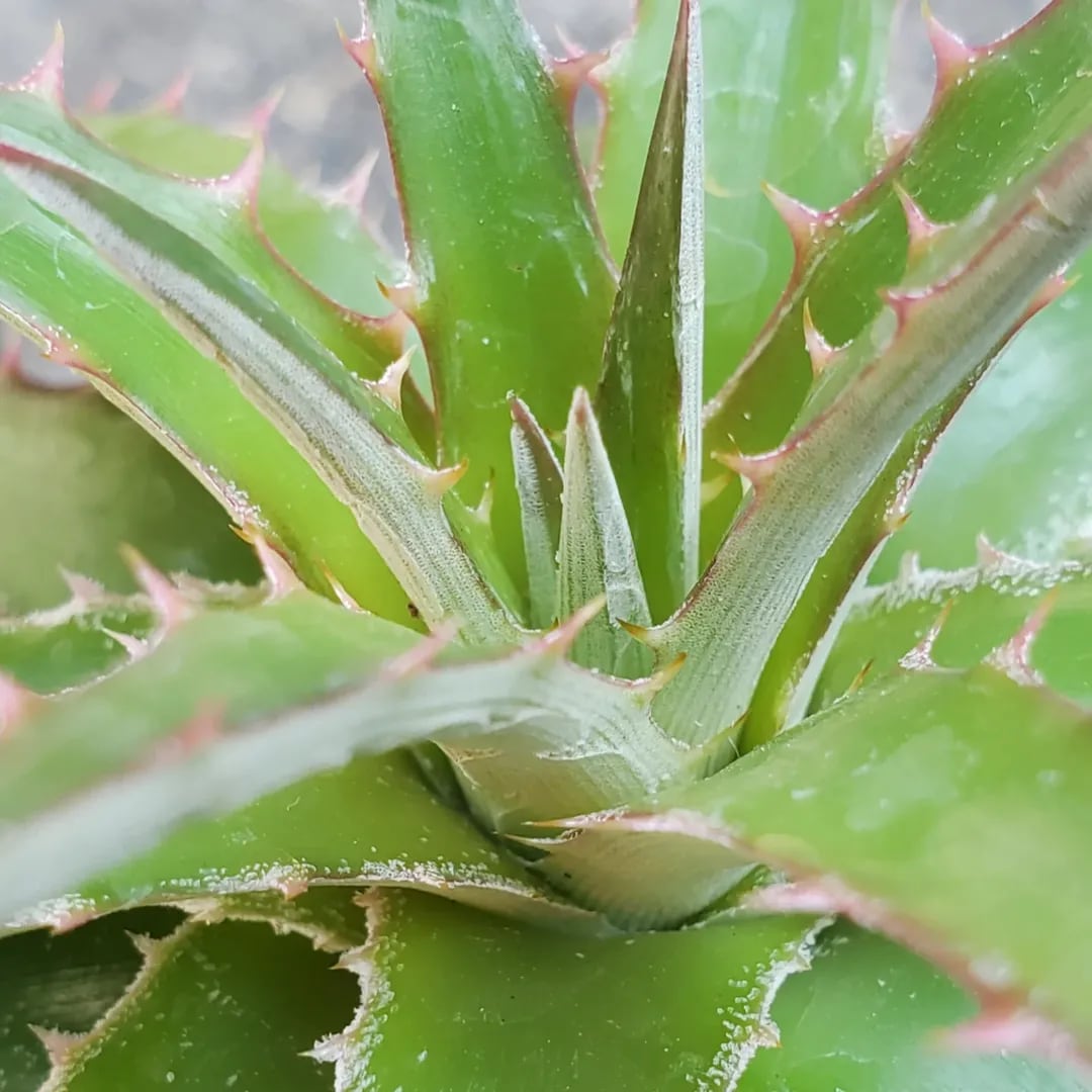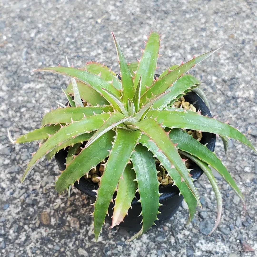 緑葉が美しい、原種ディッキアです。高温時に強い日光に当てると濃い緑から黄緑色に近い発色になります。(撮影日:2026年02月14日)
