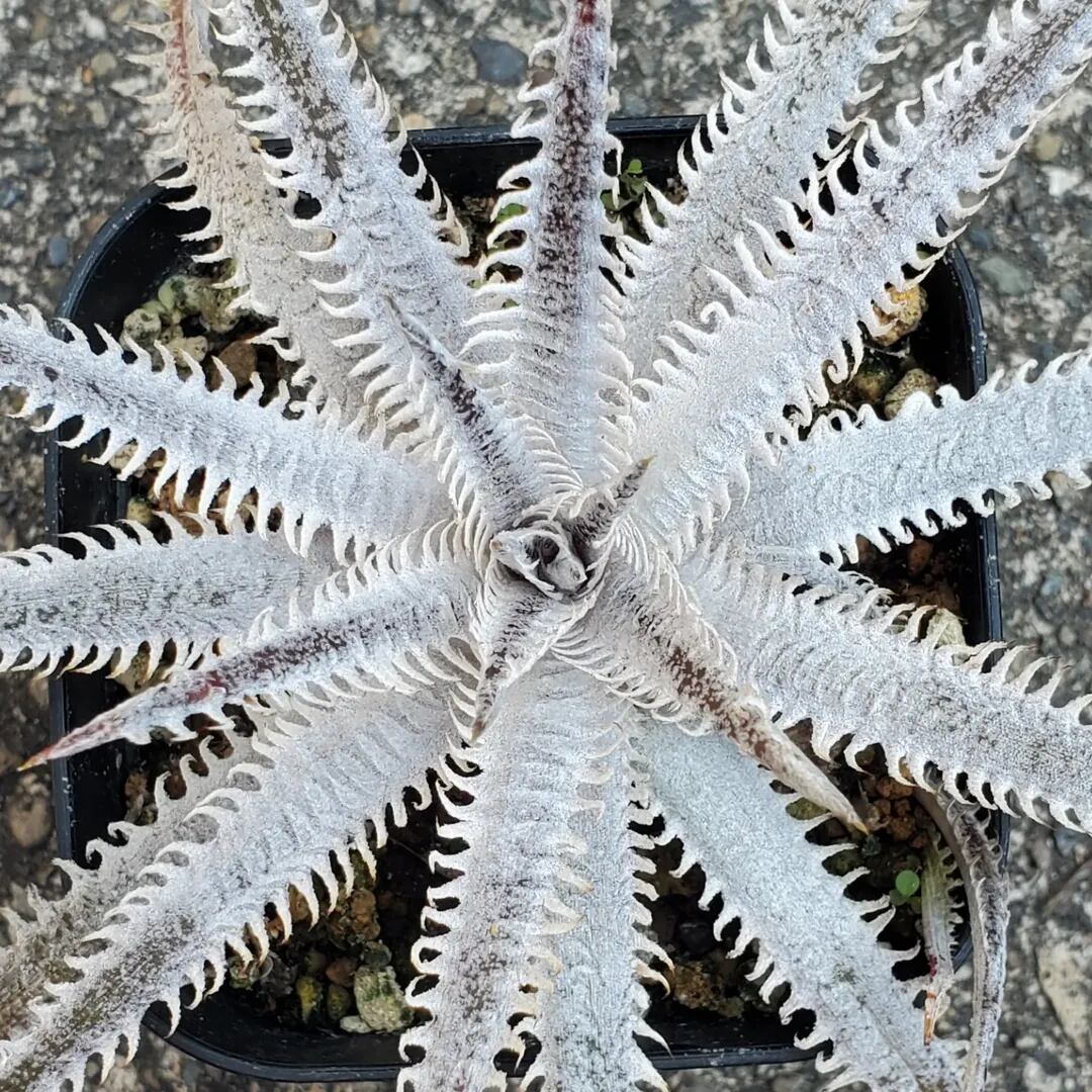 BSI登録の、タイのSueb氏のハイブリッドです。赤紫のツヤ葉に、Nagasのような、ヒダ的な白く細かい鋸歯が密に並びます。(撮影日:2026年02月14日)画像2、3は実際の親株で、販売株はこの親株からの子株になります。