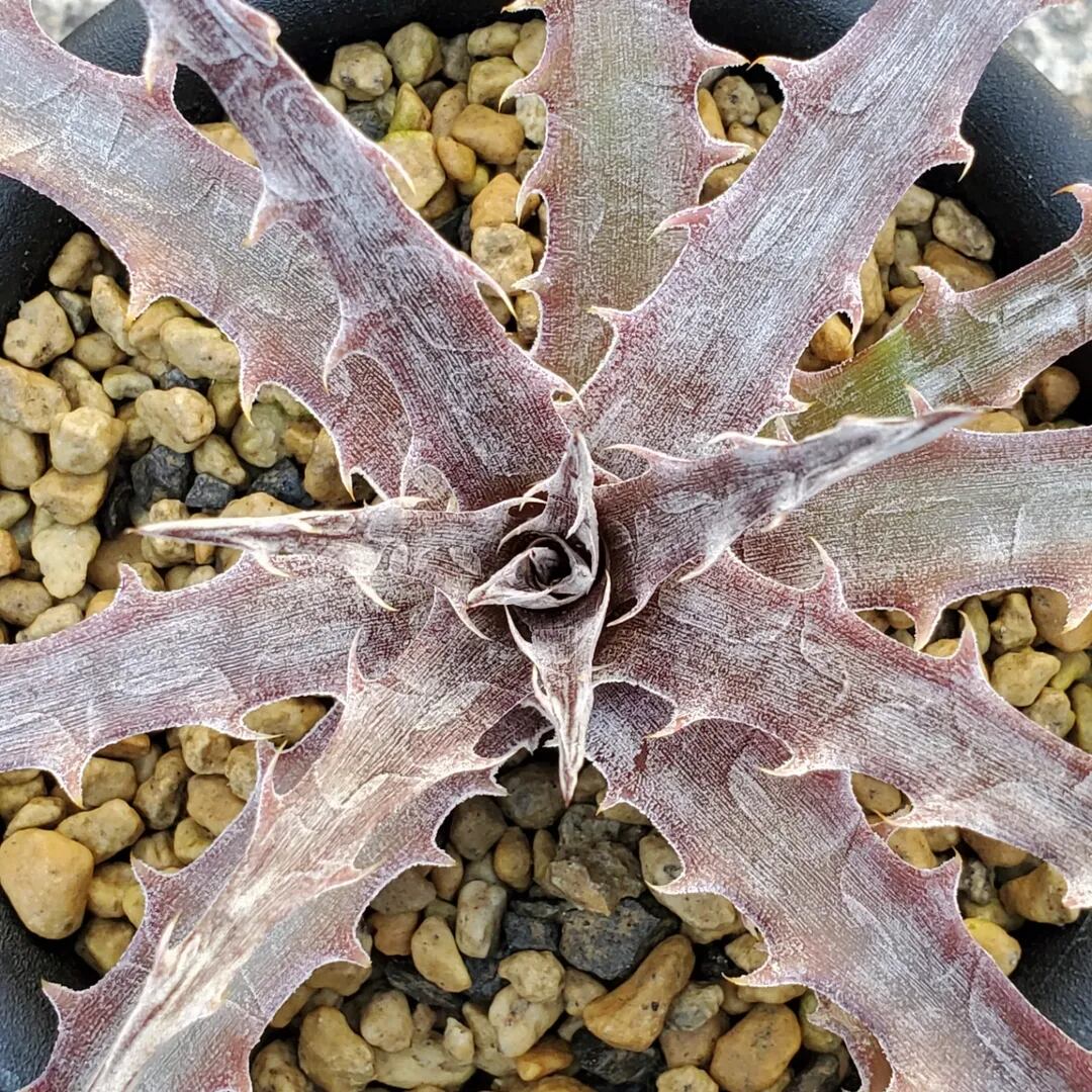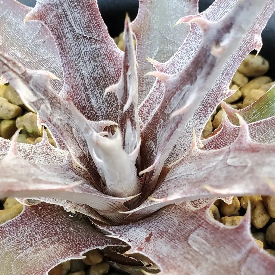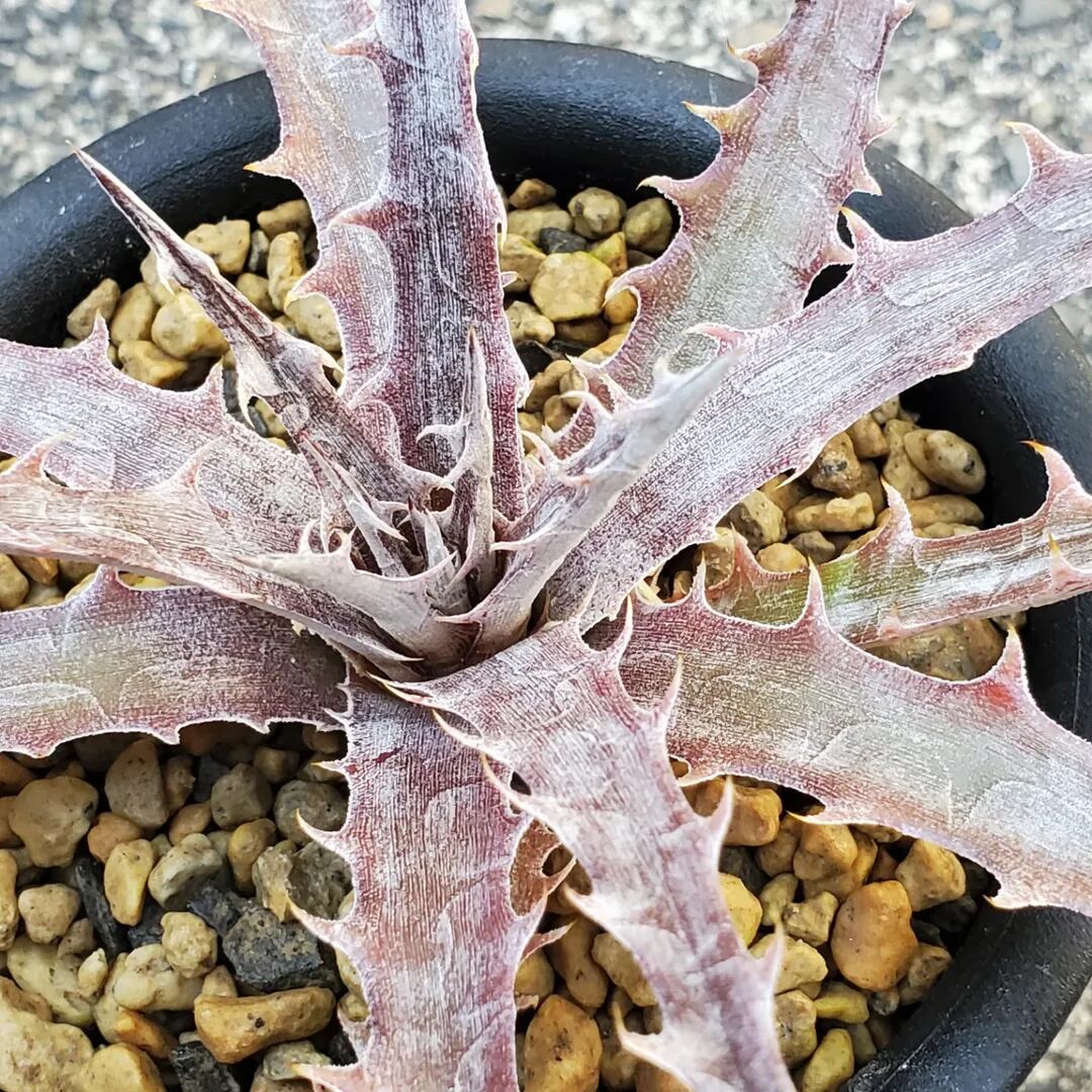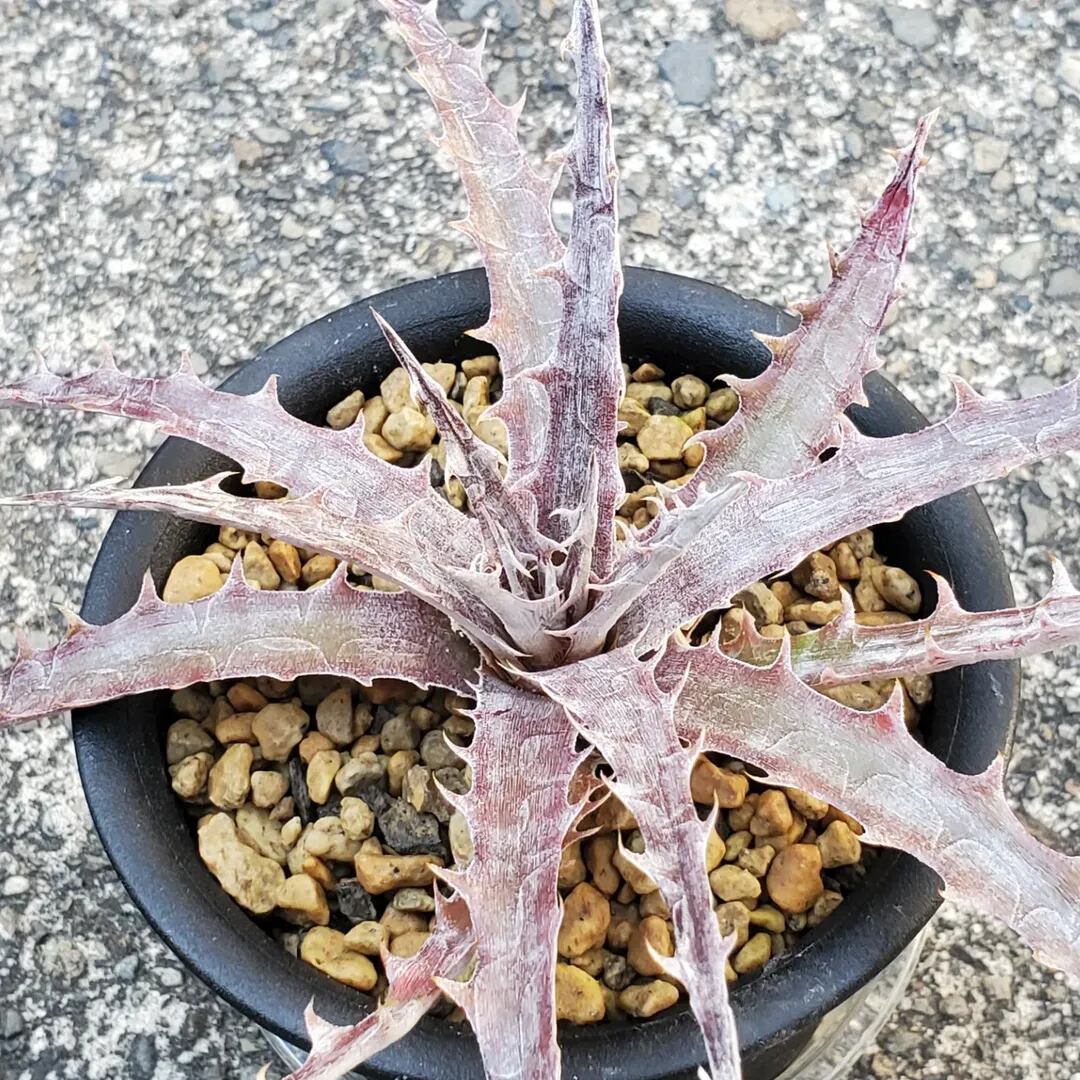 Michael Kiehl氏によるMercury F2の選抜品種(D029)で、レアなBattle Seriesの一つになります。兄弟株には、Dyckia ‘Battle Hatchet’:バトルハチェット、Dyckia ‘Battle Cry’:バトルクライなどがあります。(撮影日:2026年02月23日)画像2、3は、NNNにある参考親株です。