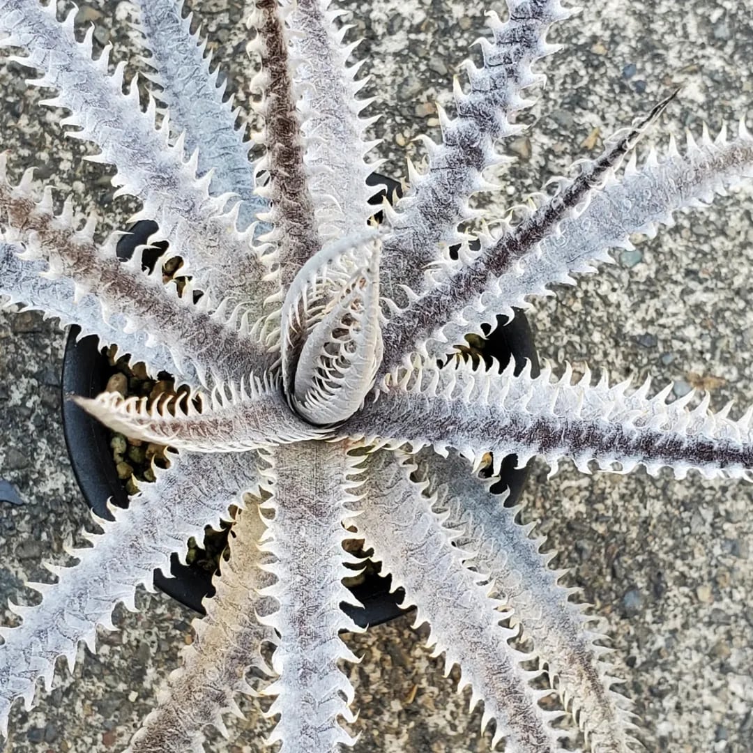 日本のkonspoさん(DYKSP)作出で、NNNで育成されたハイブリッドです。特大のドリル状に展開する新葉と、逆向きの鋸歯(リバーススパイン)が特徴的な、迫力のある品種です。画像2、3は実際の親株で、販売株はこの親株から採れた子株になります。(撮影日:2026年02月23日)