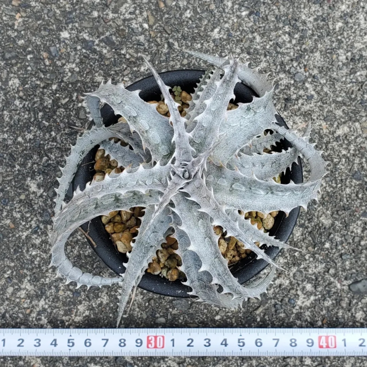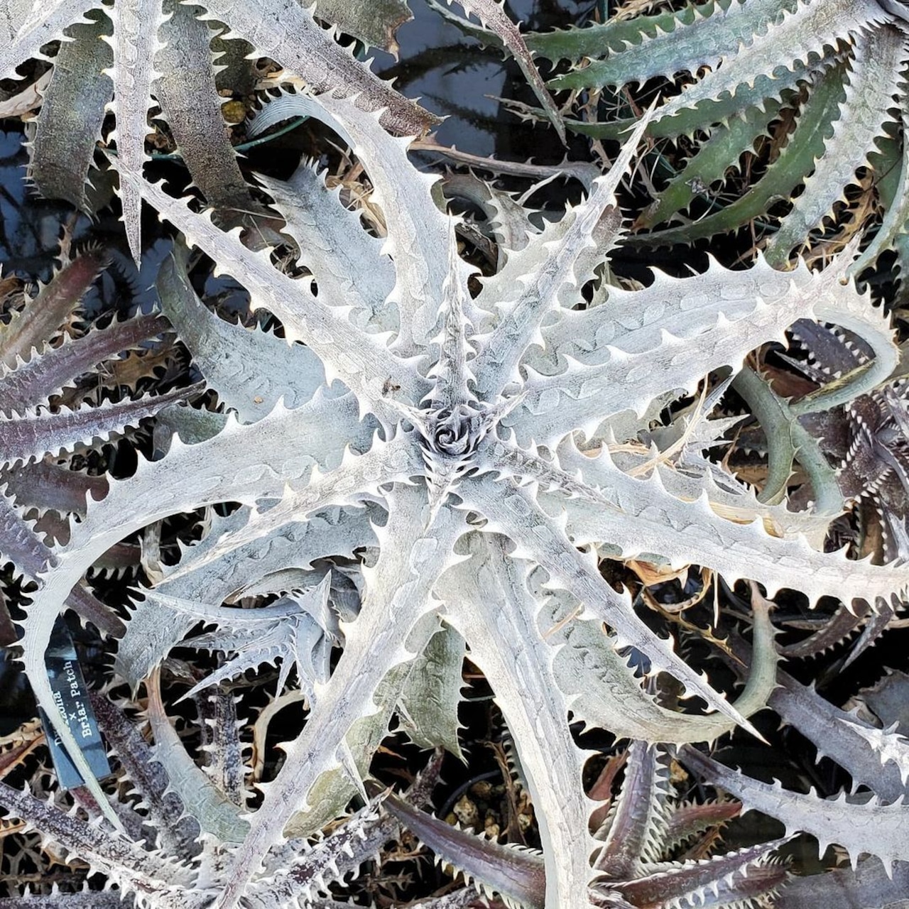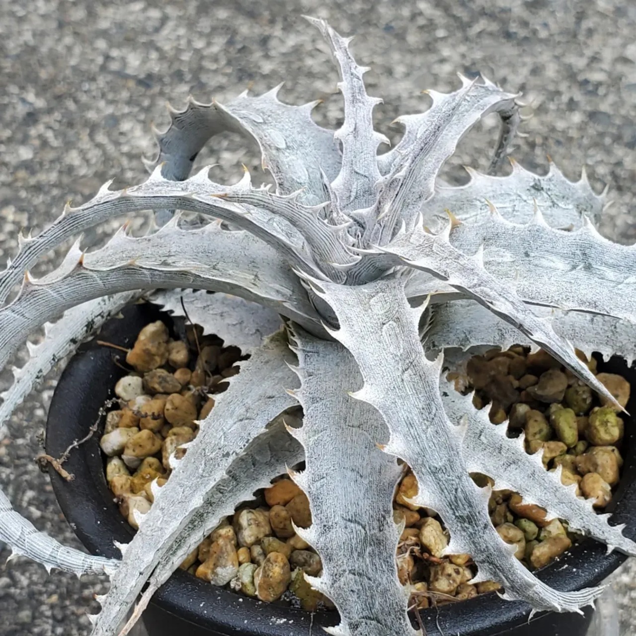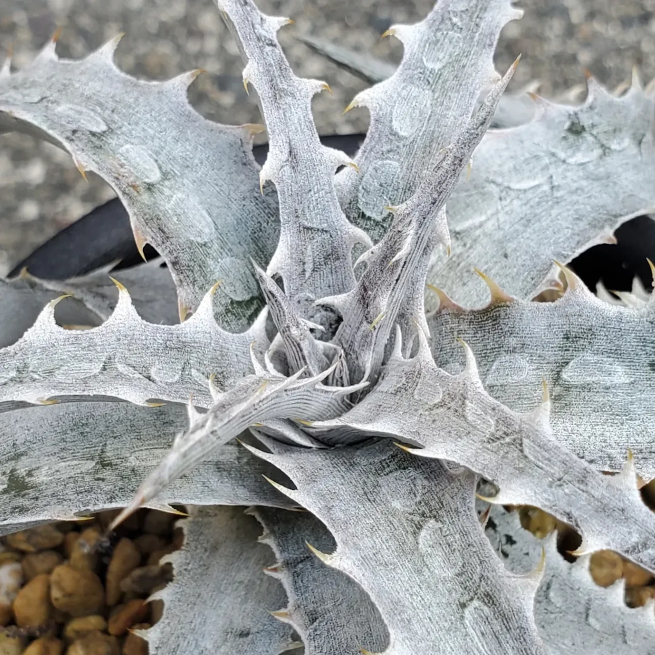 Gray Opsの白さに、Boneの鋭さが出たような印象の、Qdyckiaのハイブリッドです。白く美しいロゼットに成長します。(撮影日:2026年01月04日)画像2、3は実際の親株で、販売株はこの親株から採れた子株になります。