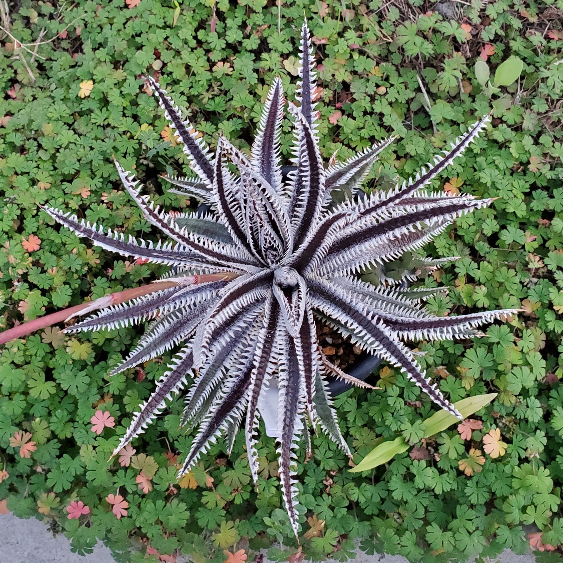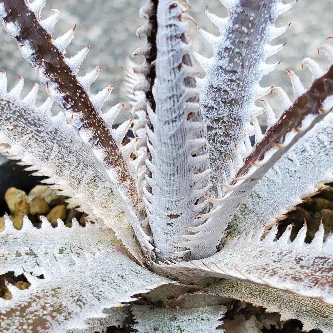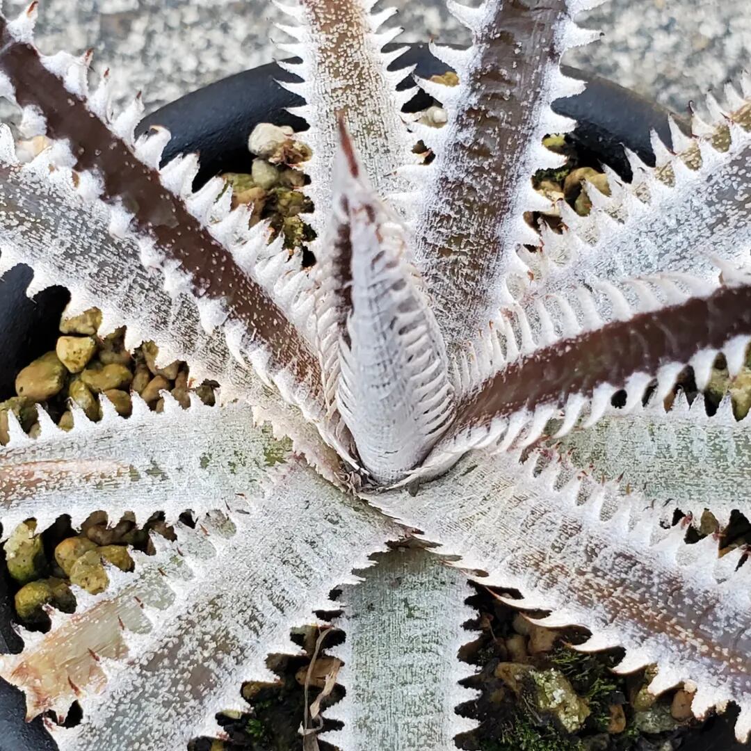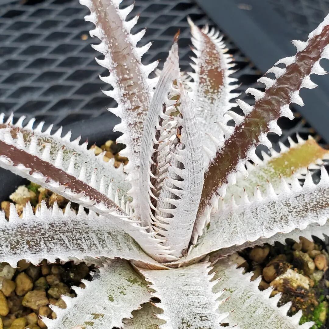 赤紫の地肌に白く細かい鋸歯が並ぶ、Amazonico産のハイブリッドです。(撮影日:2026年02月23日)画像2は実際の親株で、販売株はこの親株から採れた子株になります。