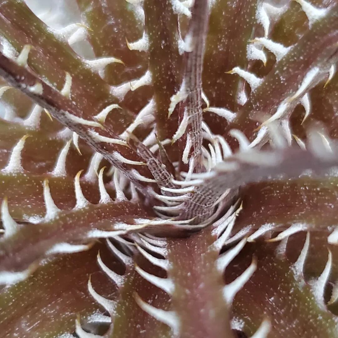 ビル・ベイカー氏が生前作出したハイブリッド群に、後年「4th of July Series」というシリーズ名が付けられた中の一つになります。茶~赤紫色の葉に、細かい鋸歯が無数に並ぶ、美しいハイブリッドです。Sueb氏の代表作「Nagas」の種子親としても知られています。(撮影日:2025年07月27日)画像2、3は実際の親株で、販売株はこの親株から採れた子株になります。