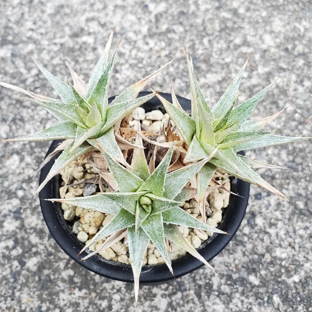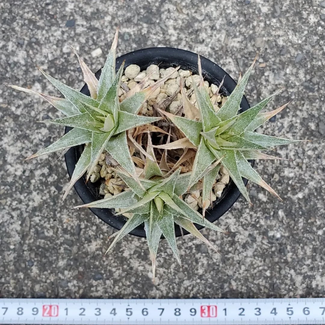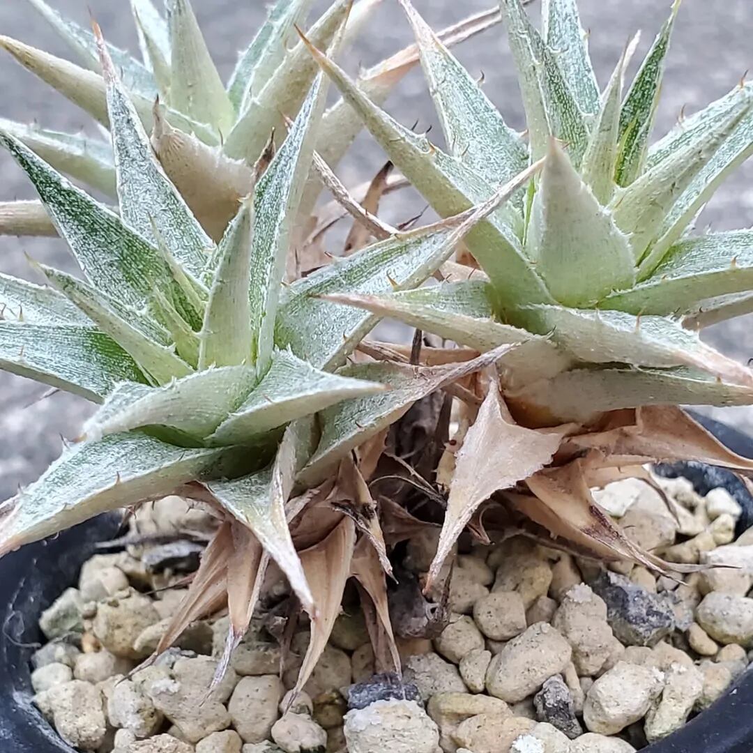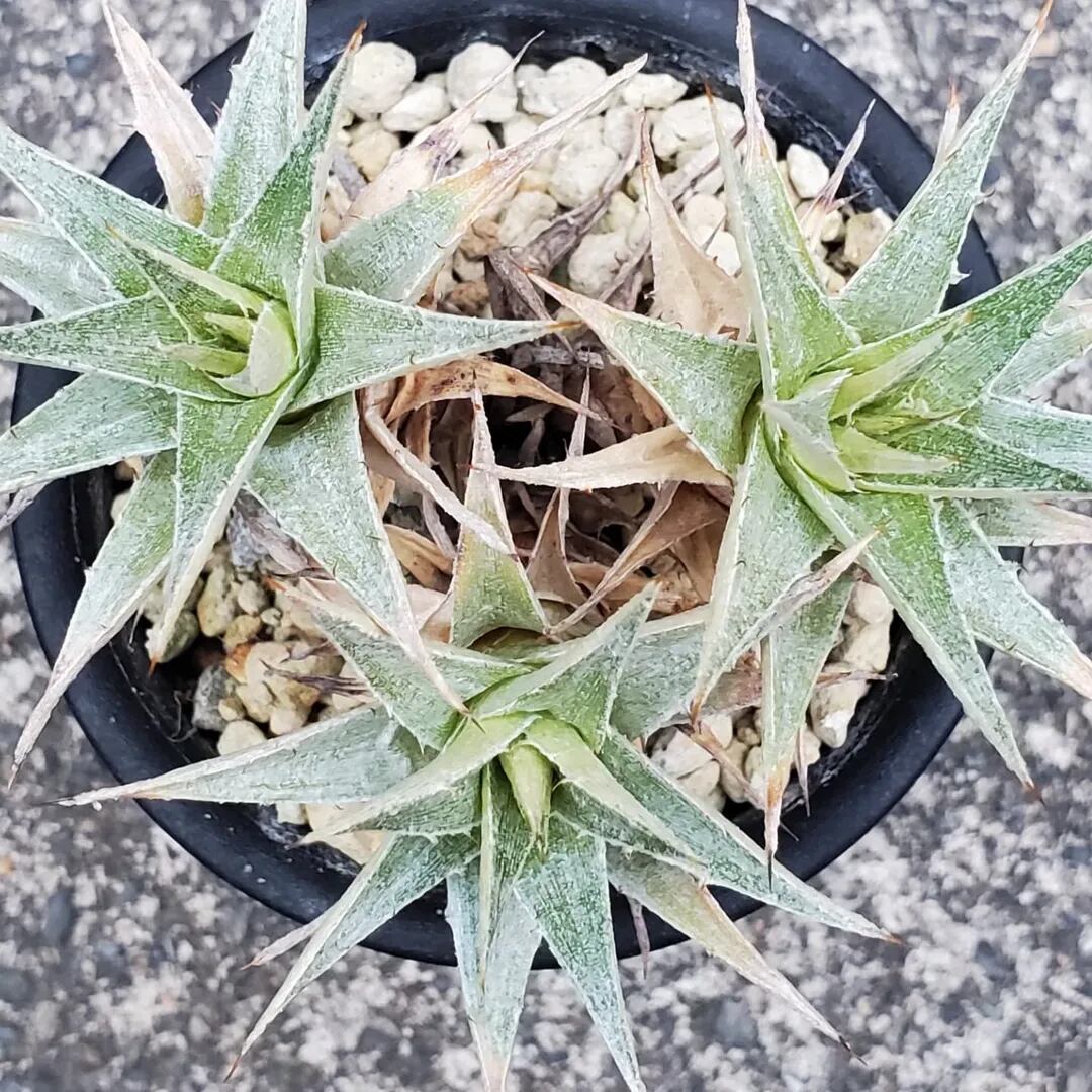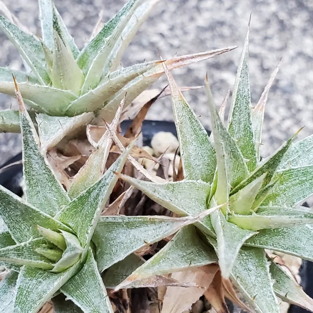 ディッキアと同じ科に属する、Deuterocohnia(デウテロコニア)の一種です。小型のロゼットが群生し、こんもりとしたドームを形成します。(撮影日:2025年07月29日)画像2、3は実際の親株で、販売株はこの親株から採れた子株になります。