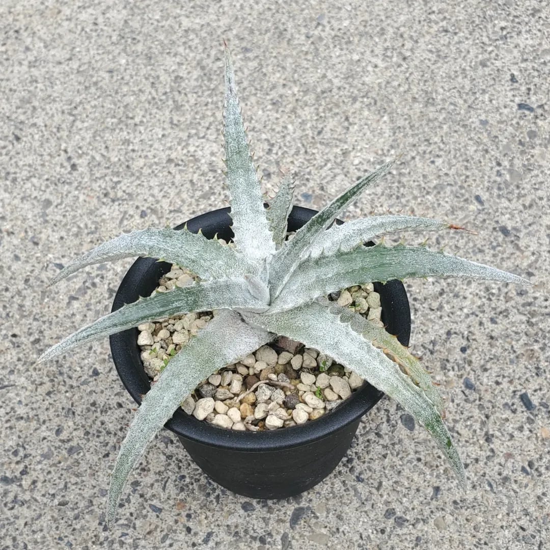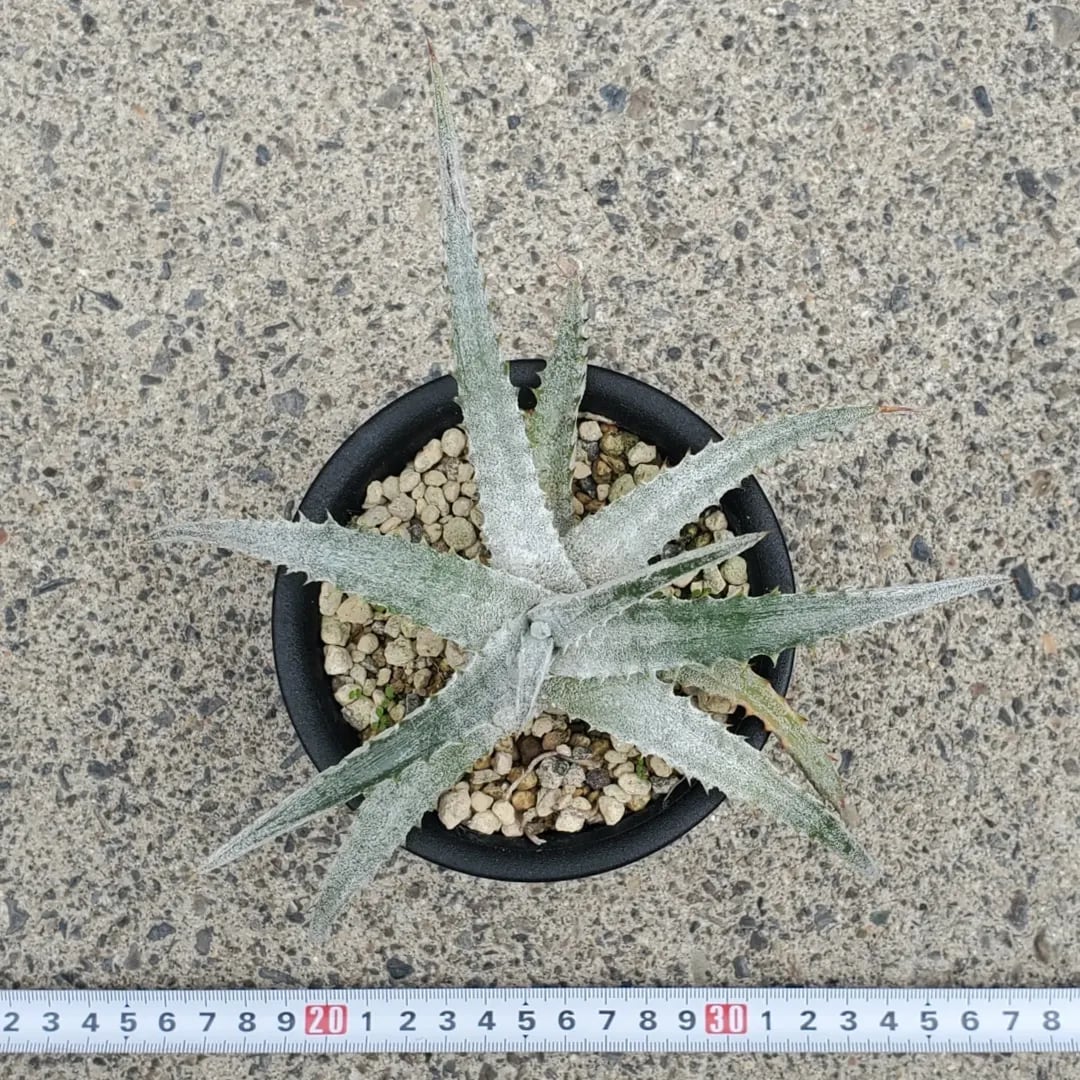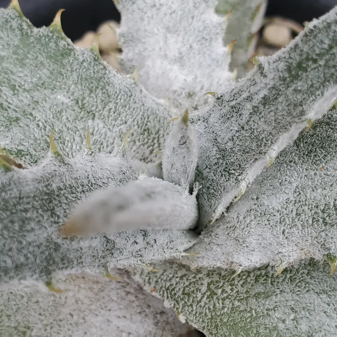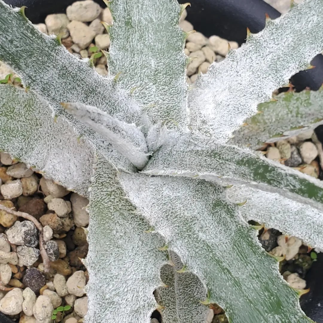 ディッキアと同じ科に属する、Hechtia(ヘクチア)の一種です。肉厚の葉とトリコームの白さが強く出る原種です。(撮影日:2025年10月20日)
