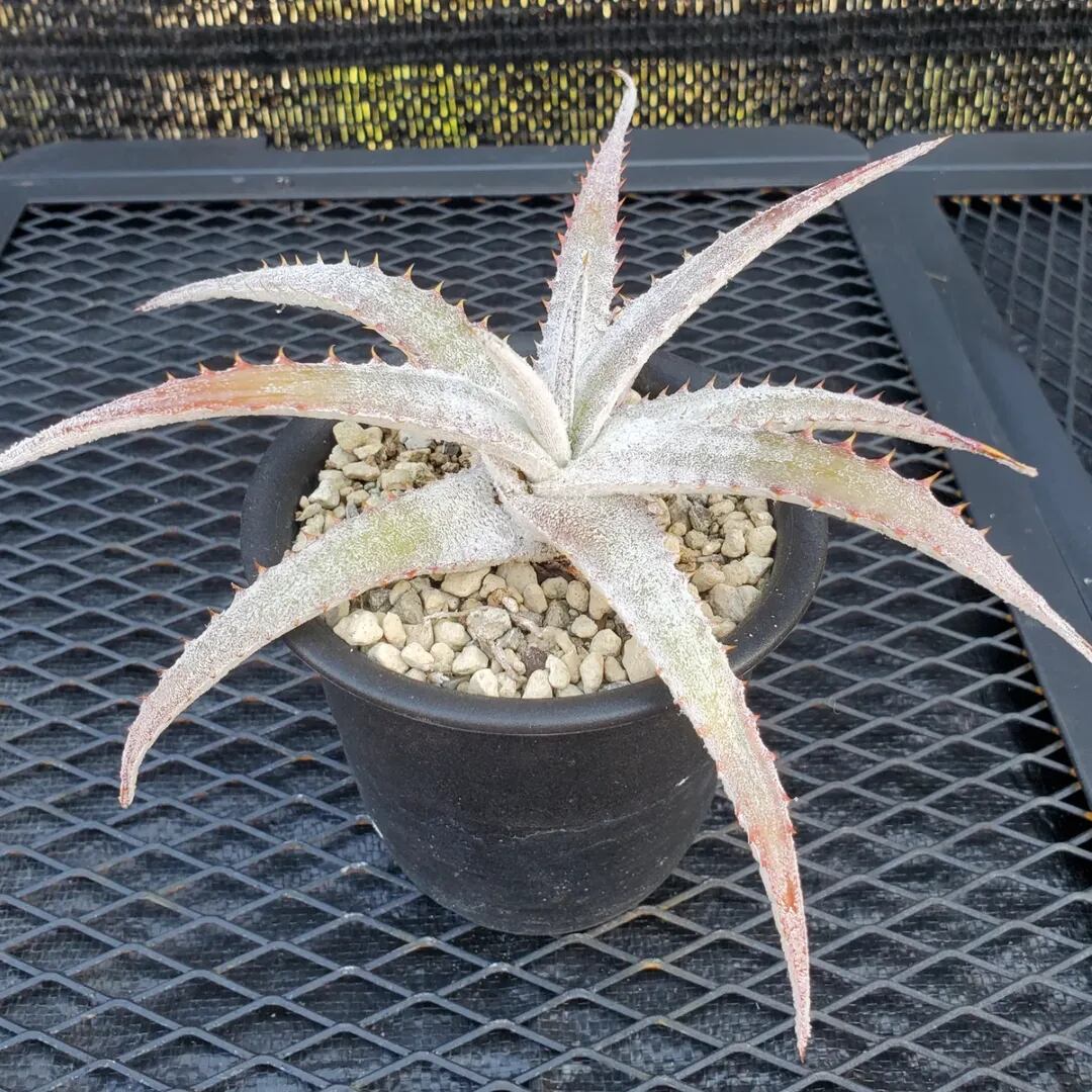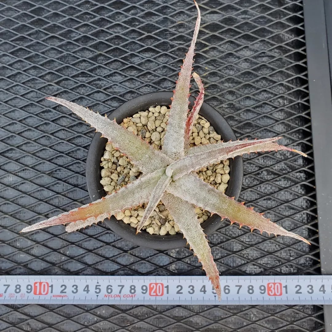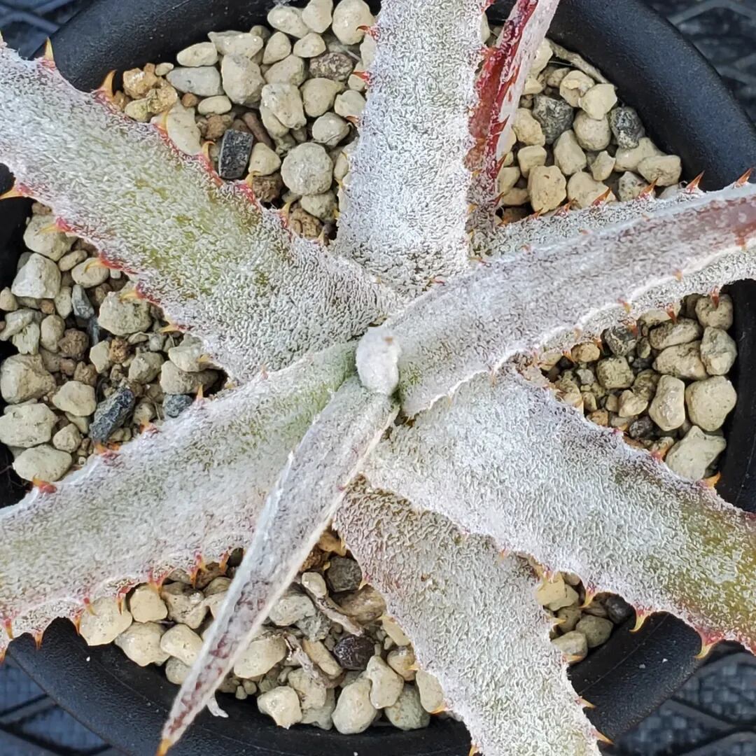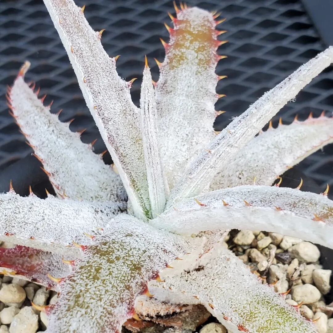 ディッキアと同じ科に属する、Hechtia(ヘクチア)の一種です。肉厚の葉とトリコームの白さが強く出る原種です。(撮影日:2026年03月23日)
