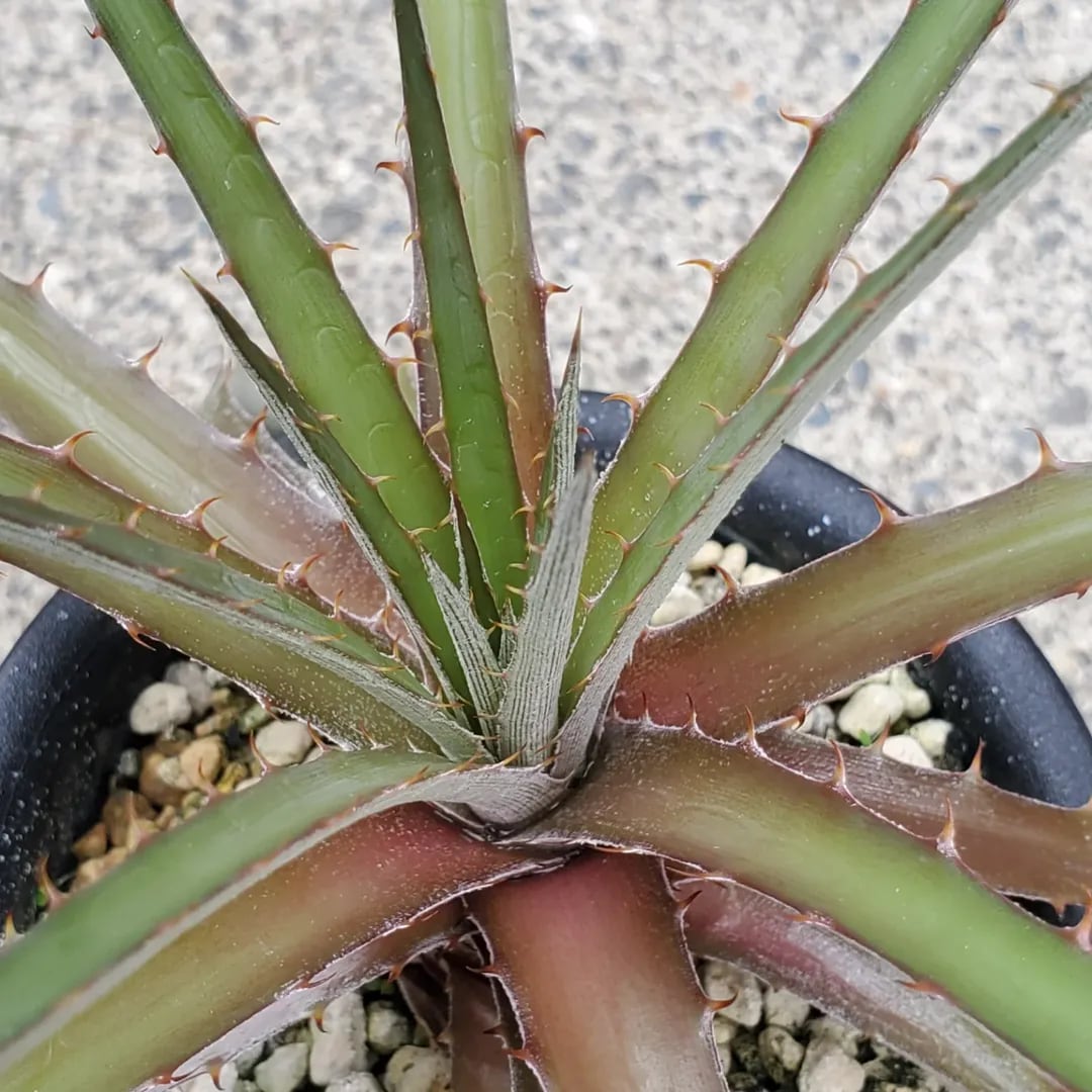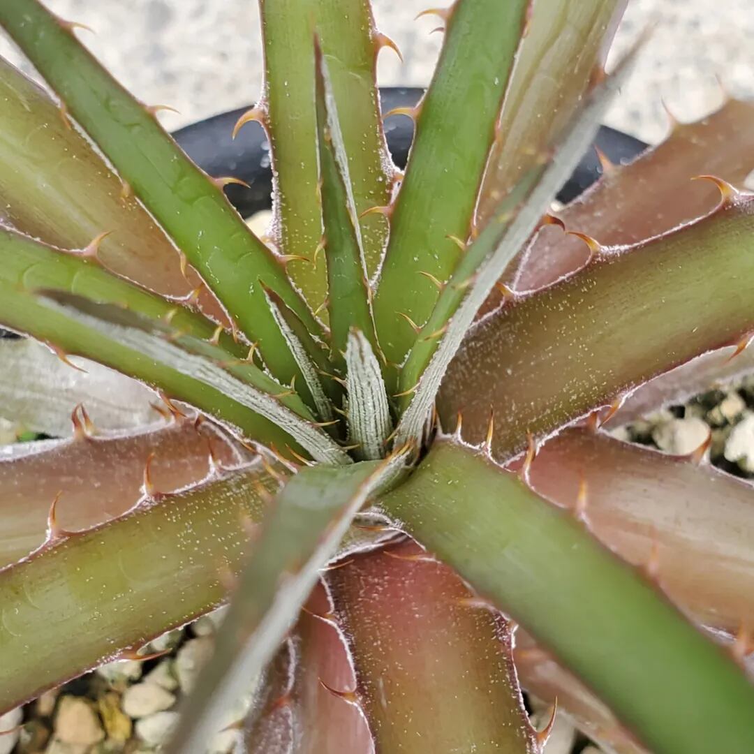 比較的細身の葉を展開する、かなりレアな原種ディッキアです。ブラジルからの種子を実生した株からの子株になります。(撮影日:2025年10月20日)画像2、3は実際の親株で、販売株はこの親株から採れた子株になります。