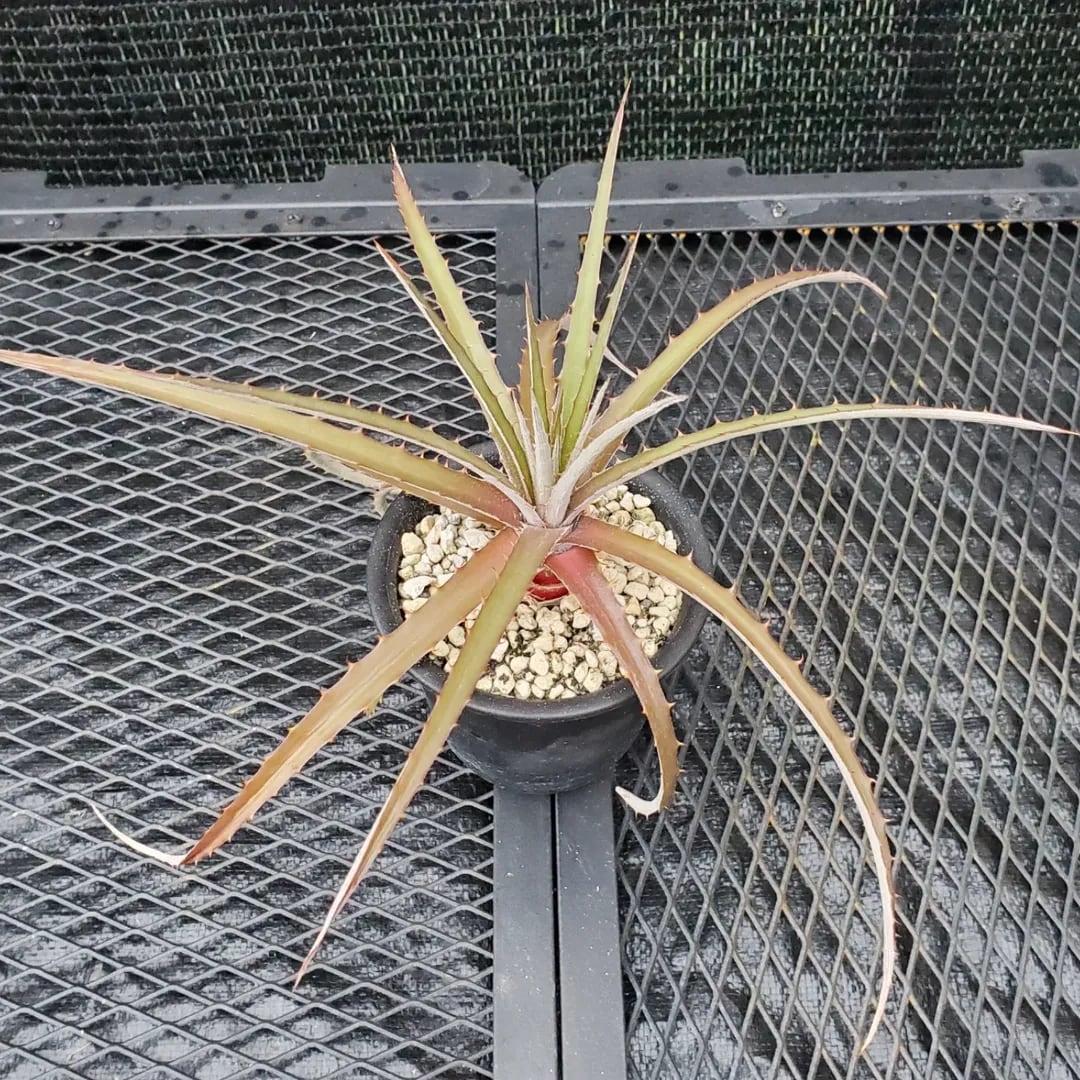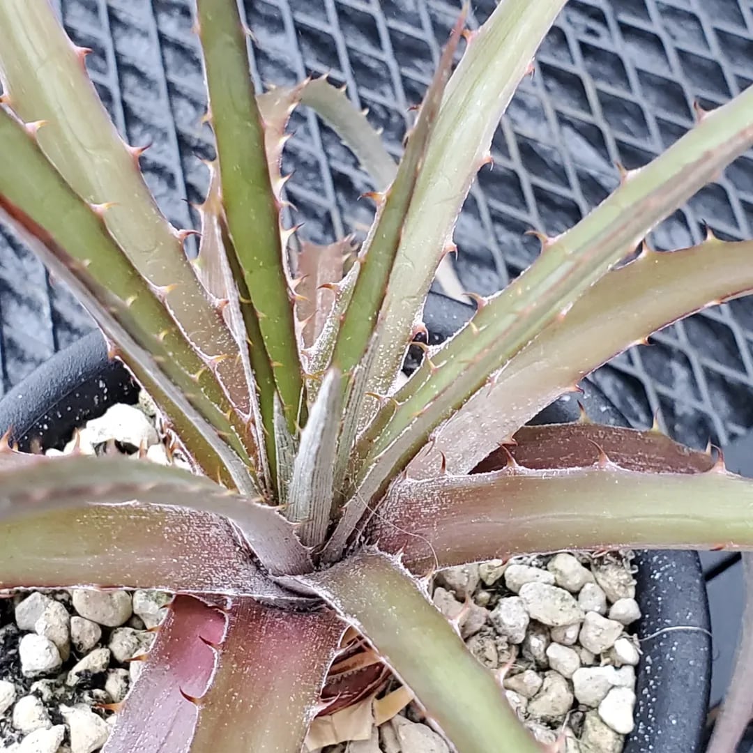 比較的細身の葉を展開する、かなりレアな原種ディッキアです。ブラジルからの種子を実生した株からの子株になります。(撮影日:2026年04月04日)画像2、3は実際の親株で、販売株はこの親株から採れた子株になります。