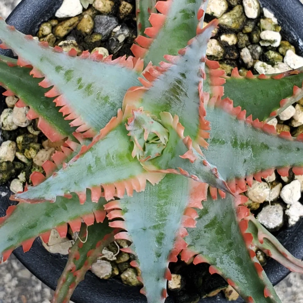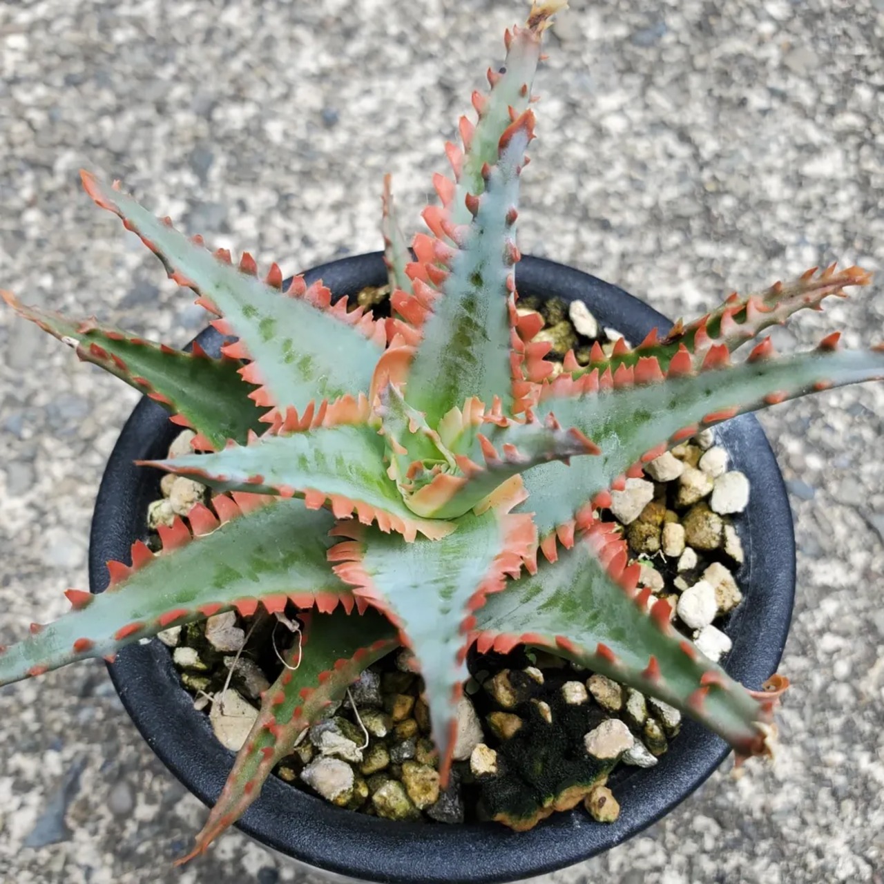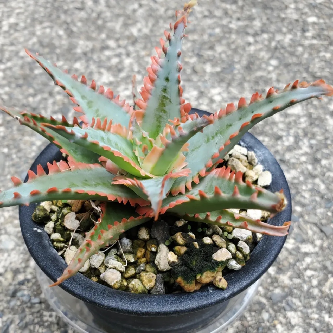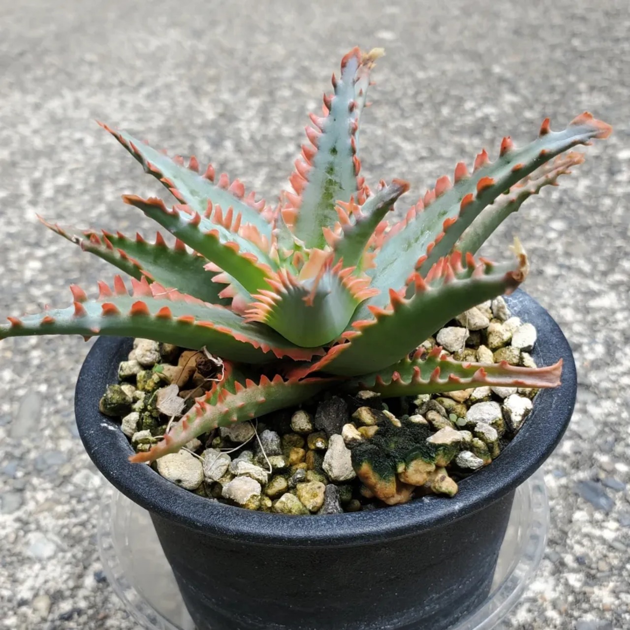 アロエのハイブリッドです。成長すると、鋸歯がほぼ連なるように並ぶ特徴的な姿になります。(撮影日:2025年09月30日)画像2、3は実際の親株で、販売株はこの親株からの子株になります。