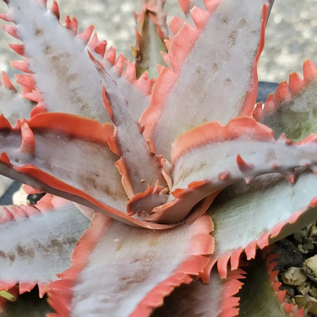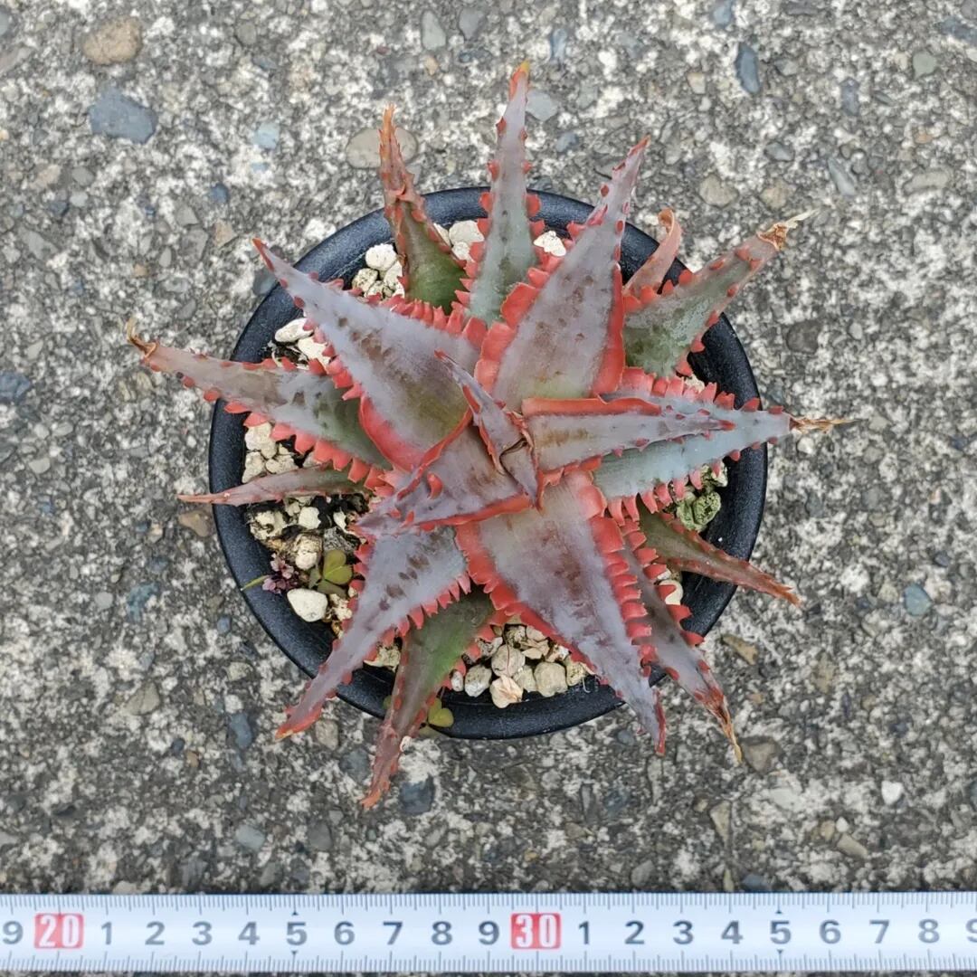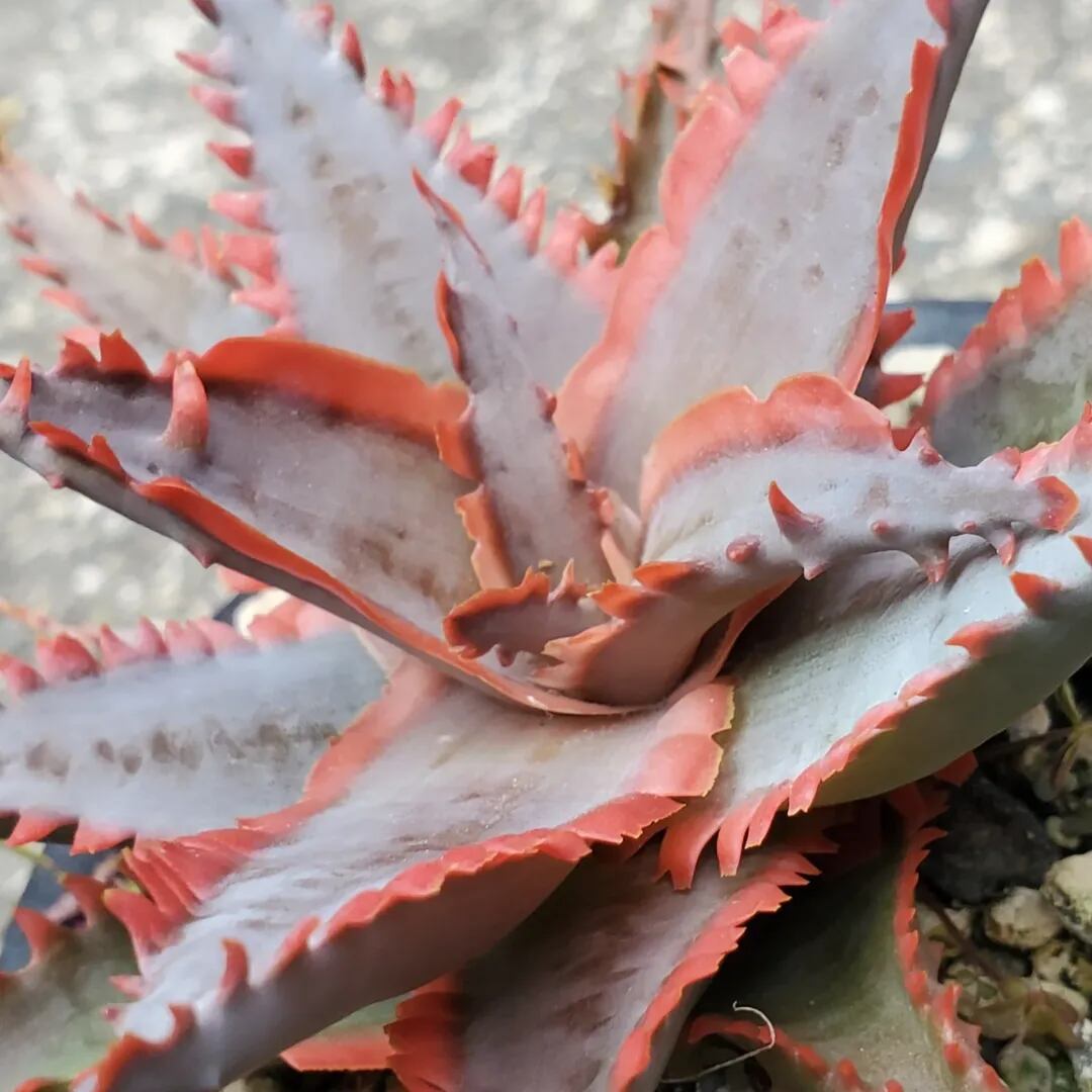 アロエのハイブリッドです。成長すると、鋸歯がほぼ連なるように並ぶ特徴的な姿になります。(撮影日:2025年12月31日)画像2、3は実際の親株で、販売株はこの親株からの子株になります。