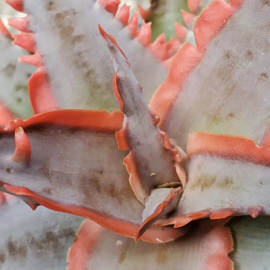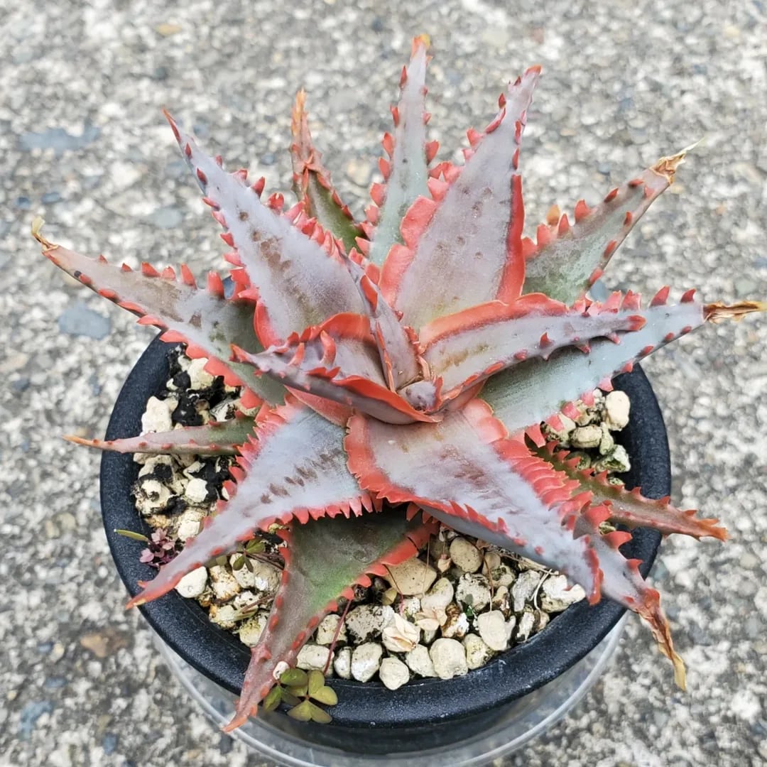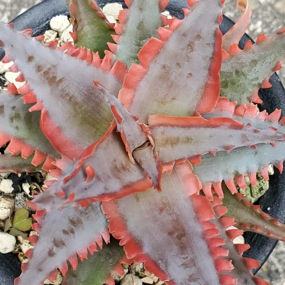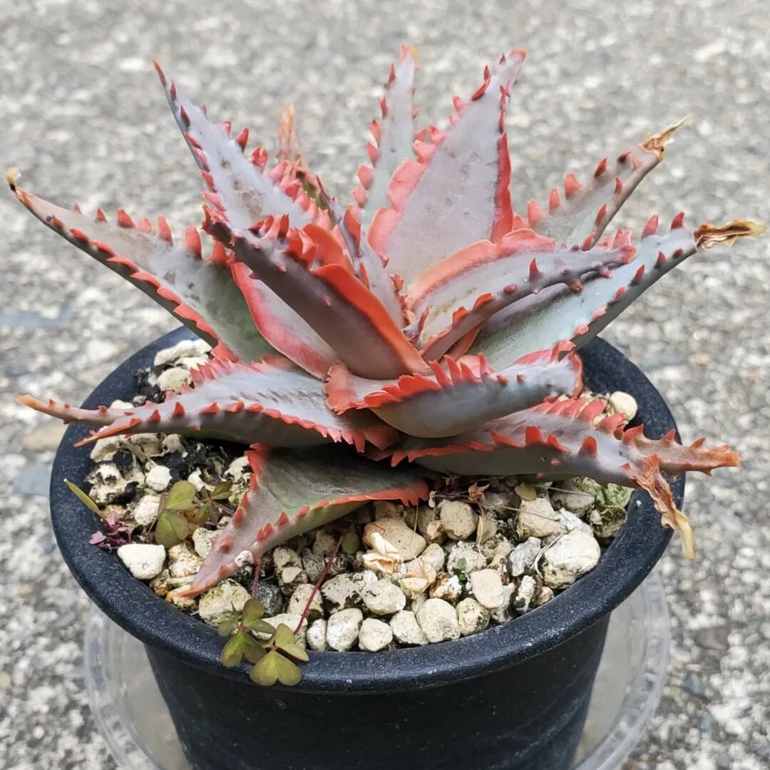 アロエのハイブリッドです。成長すると、鋸歯がほぼ連なるように並ぶ特徴的な姿になります。(撮影日:2025年12月31日)画像2、3は実際の親株で、販売株はこの親株からの子株になります。