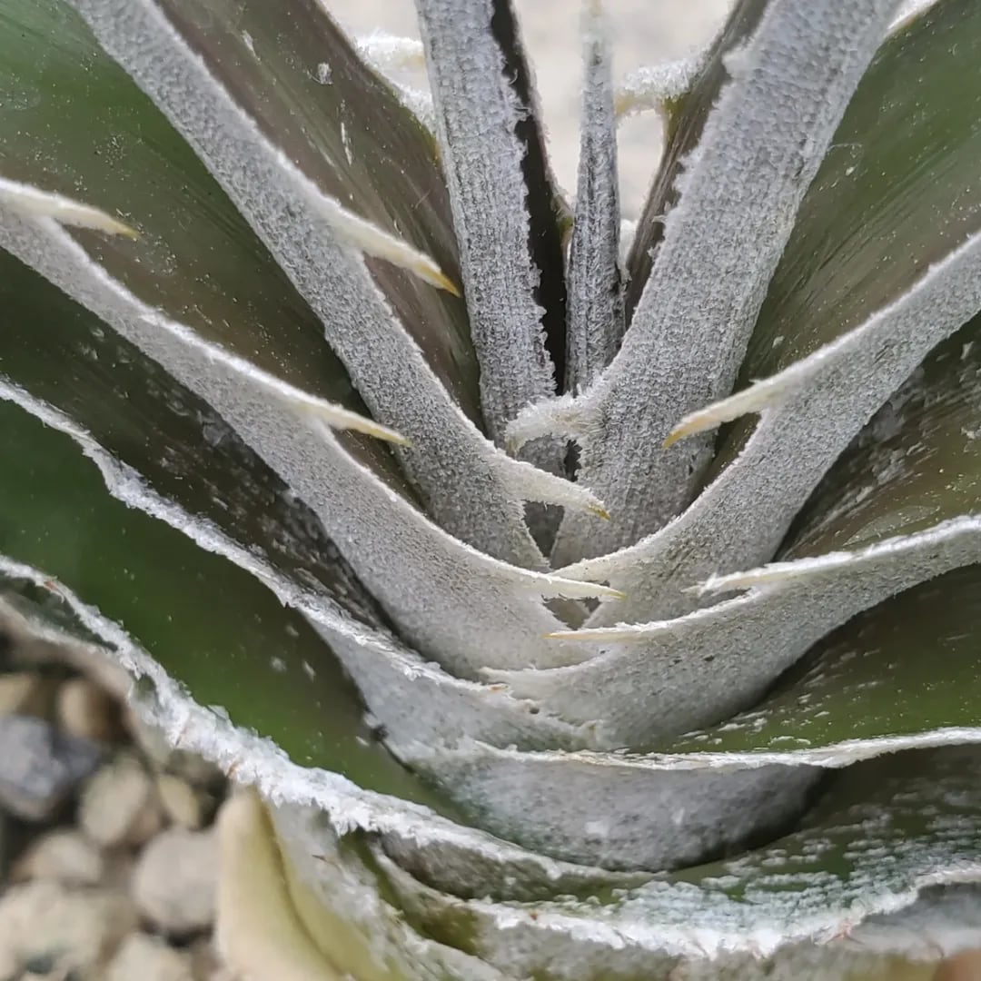 Paradon Sela氏作出の原種estevesiiのハイブリッドです。Panusの選抜ナンバーが付いています。estevesiiを狂暴かつコンパクトにしたイメージで、環境や成長過程により、旋回したり二列互生になったりと、変化します。(撮影日:2025年10月20日)