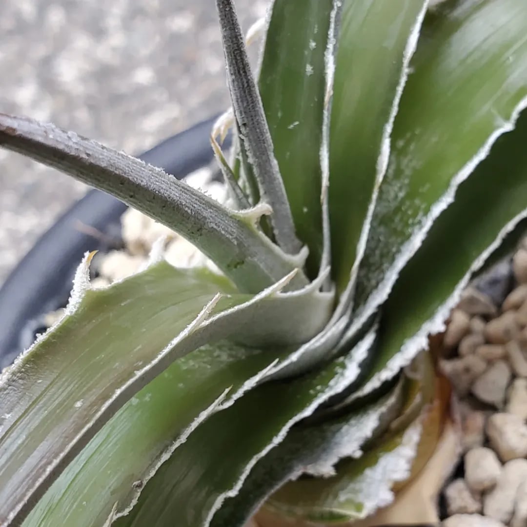 Paradon Sela氏作出の原種estevesiiのハイブリッドです。Panusの選抜ナンバーが付いています。estevesiiを狂暴かつコンパクトにしたイメージで、環境や成長過程により、旋回したり二列互生になったりと、変化します。(撮影日:2025年12月31日)