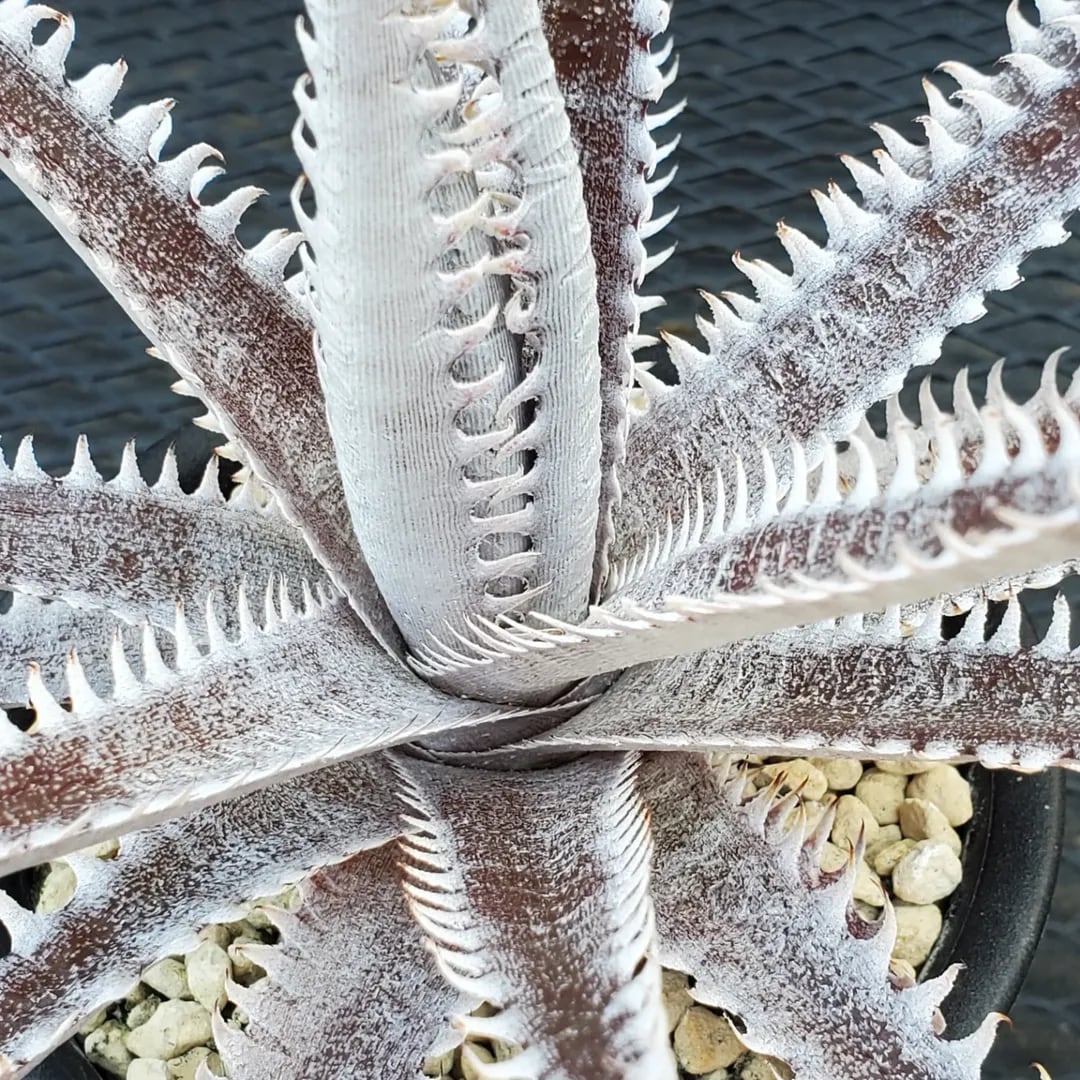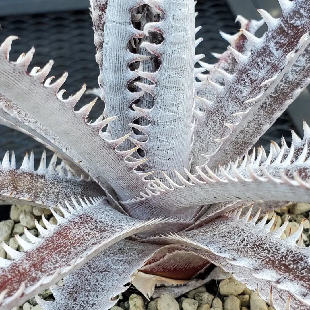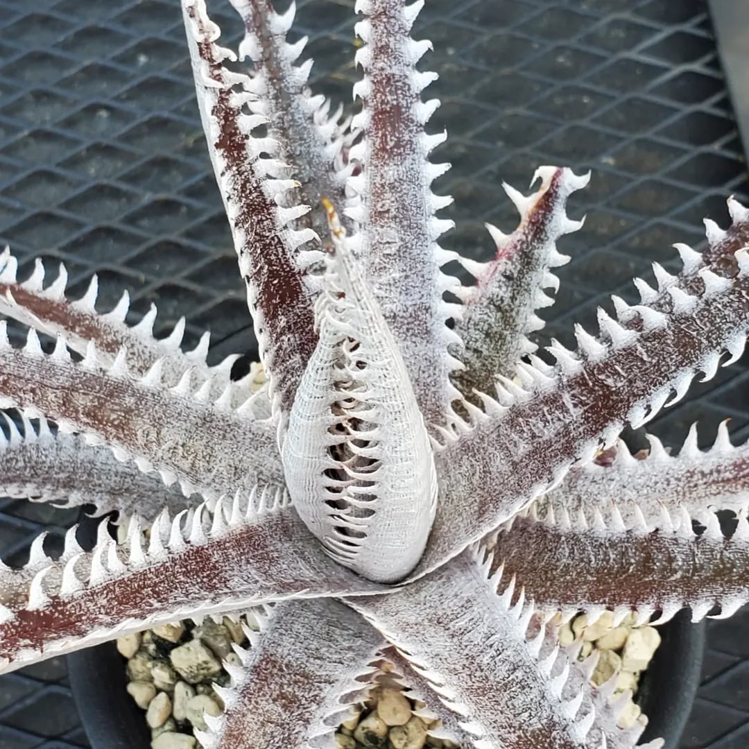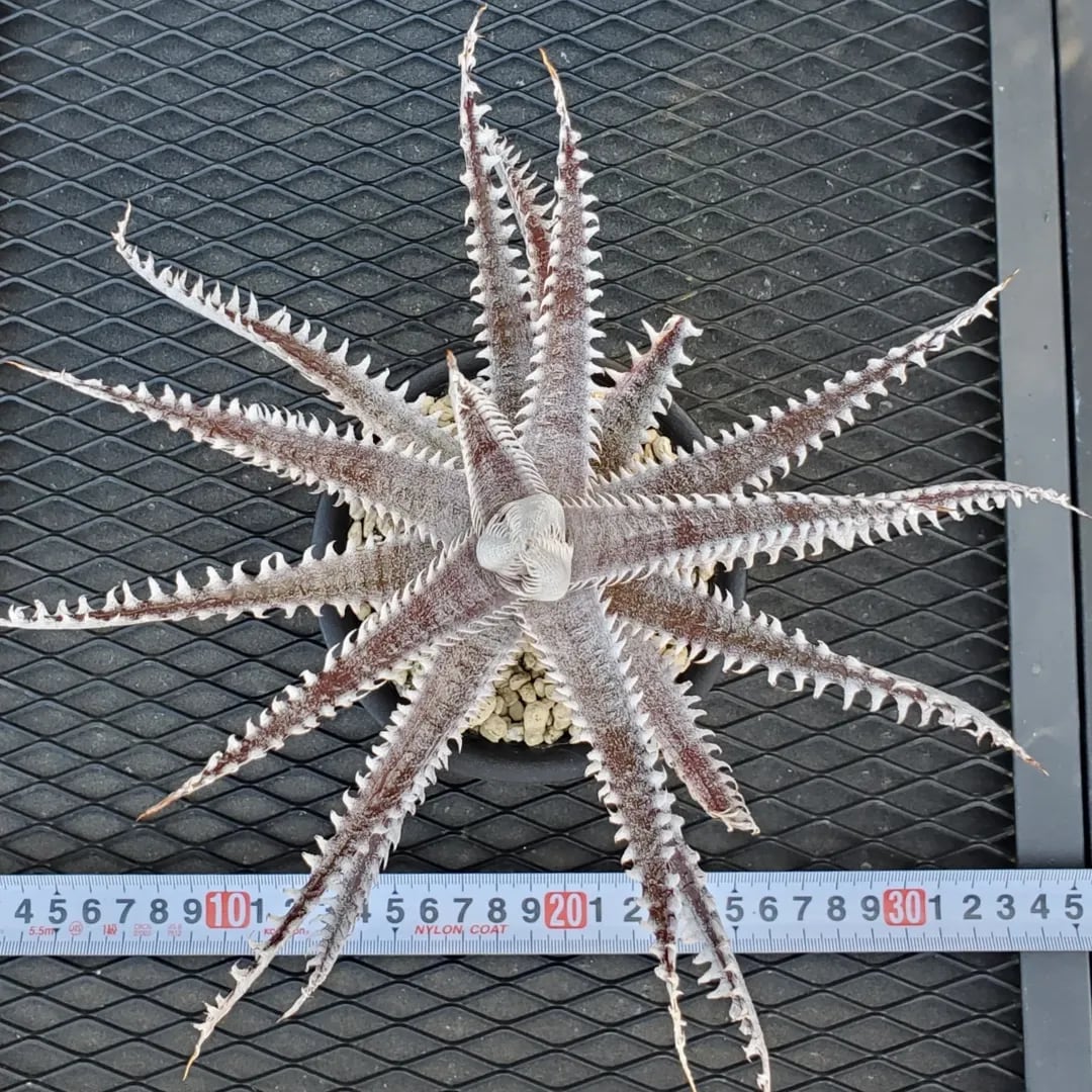 赤地の肌に白い鋸歯が密に並び、ドリル上に展開するAmazonico産のレアなハイブリッドです。(撮影日:2026年03月08日)