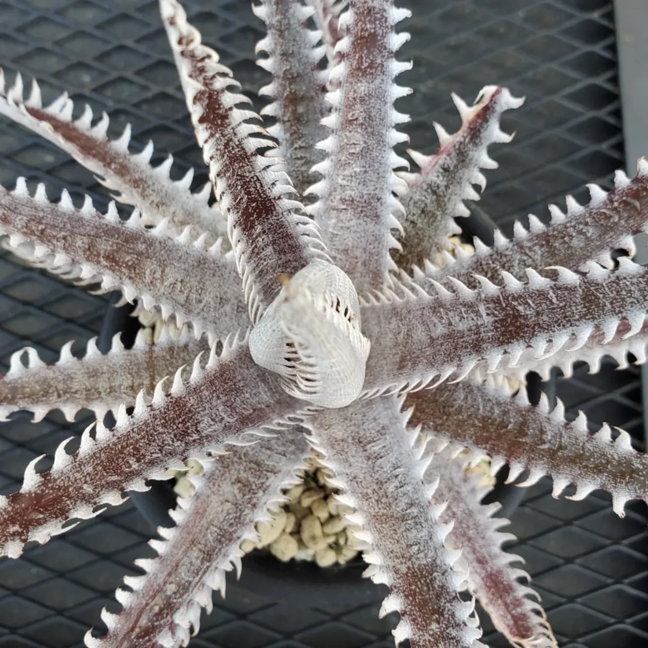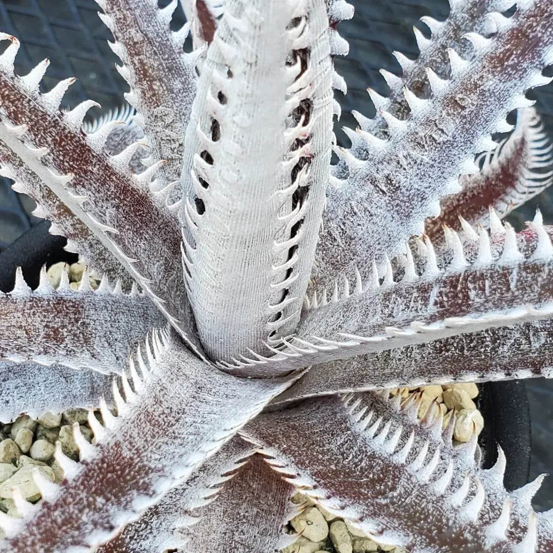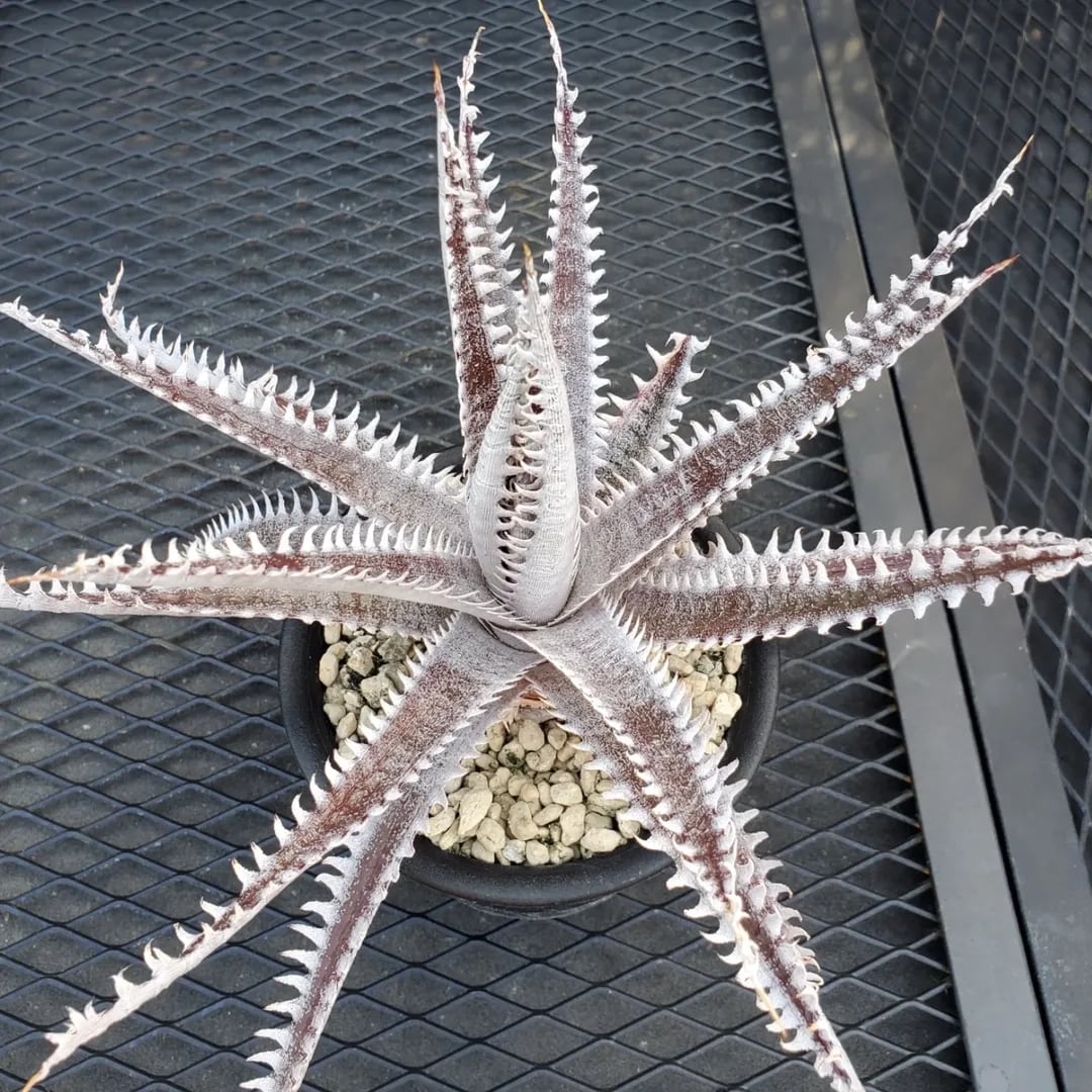 赤地の肌に白い鋸歯が密に並び、ドリル上に展開するAmazonico産のレアなハイブリッドです。(撮影日:2026年03月08日)