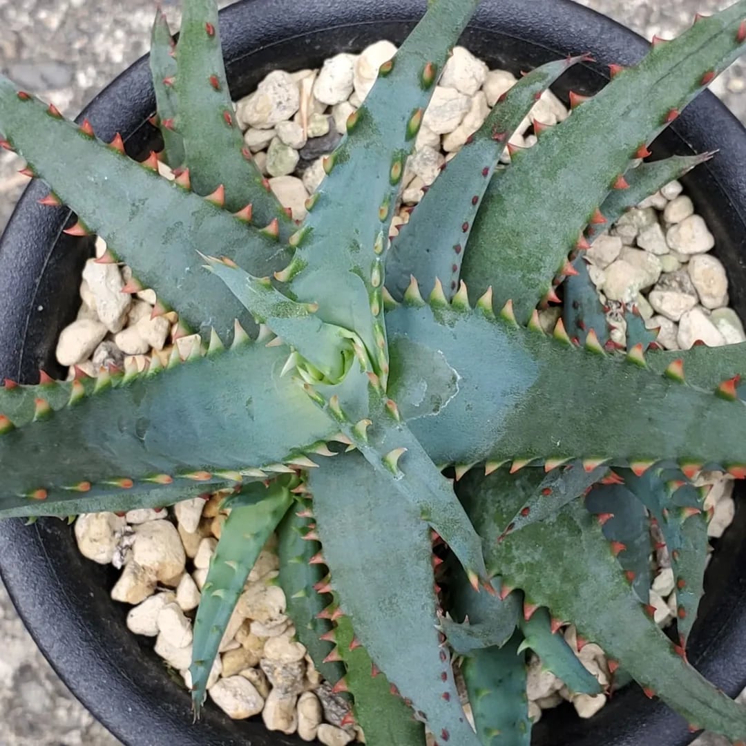 アロエの原種カスティロニアエのハイブリッドです。時期によって葉色がグレーになったり緑になったりします。(撮影日:2025年08月13日)